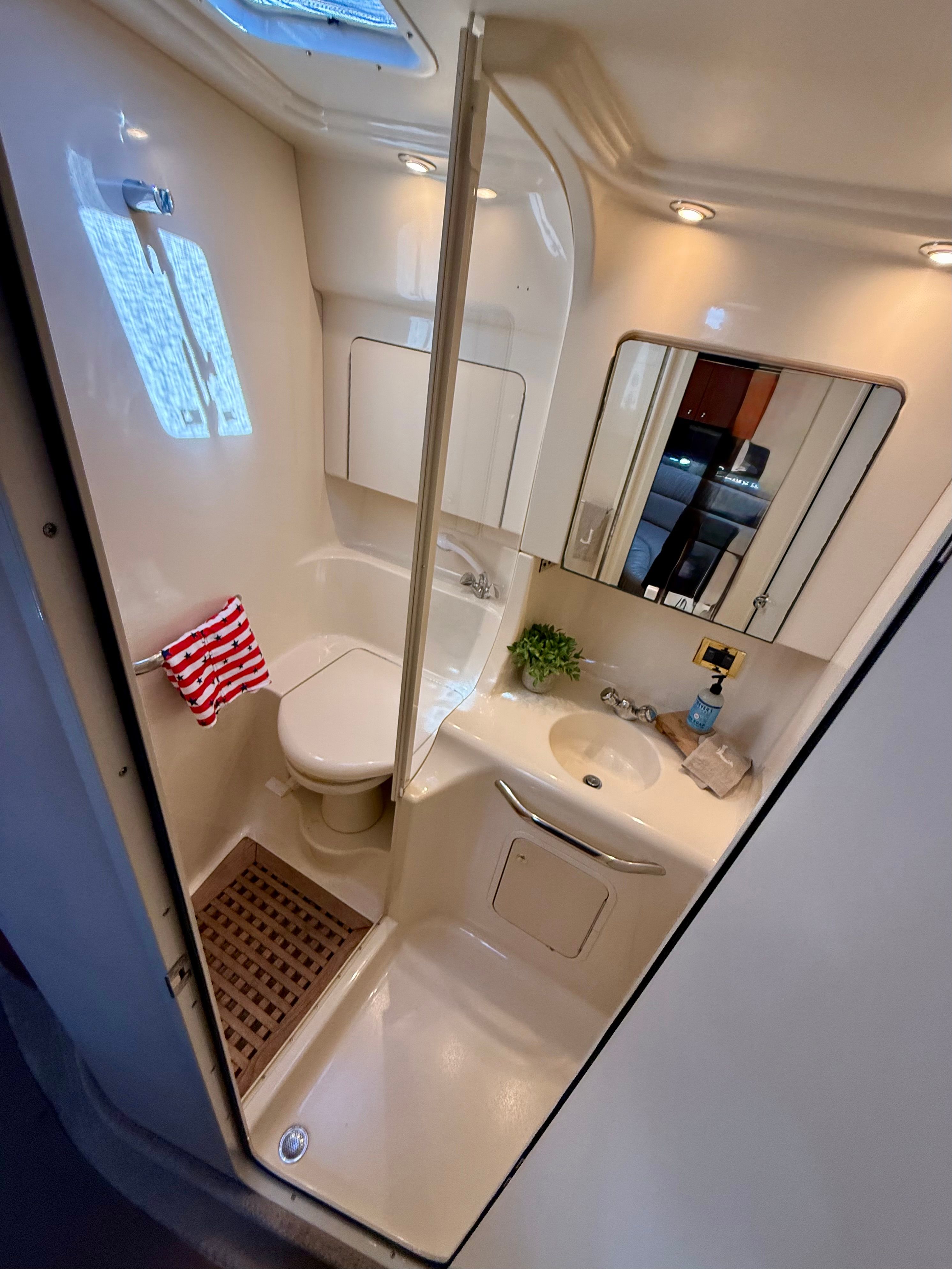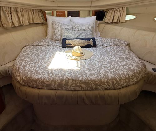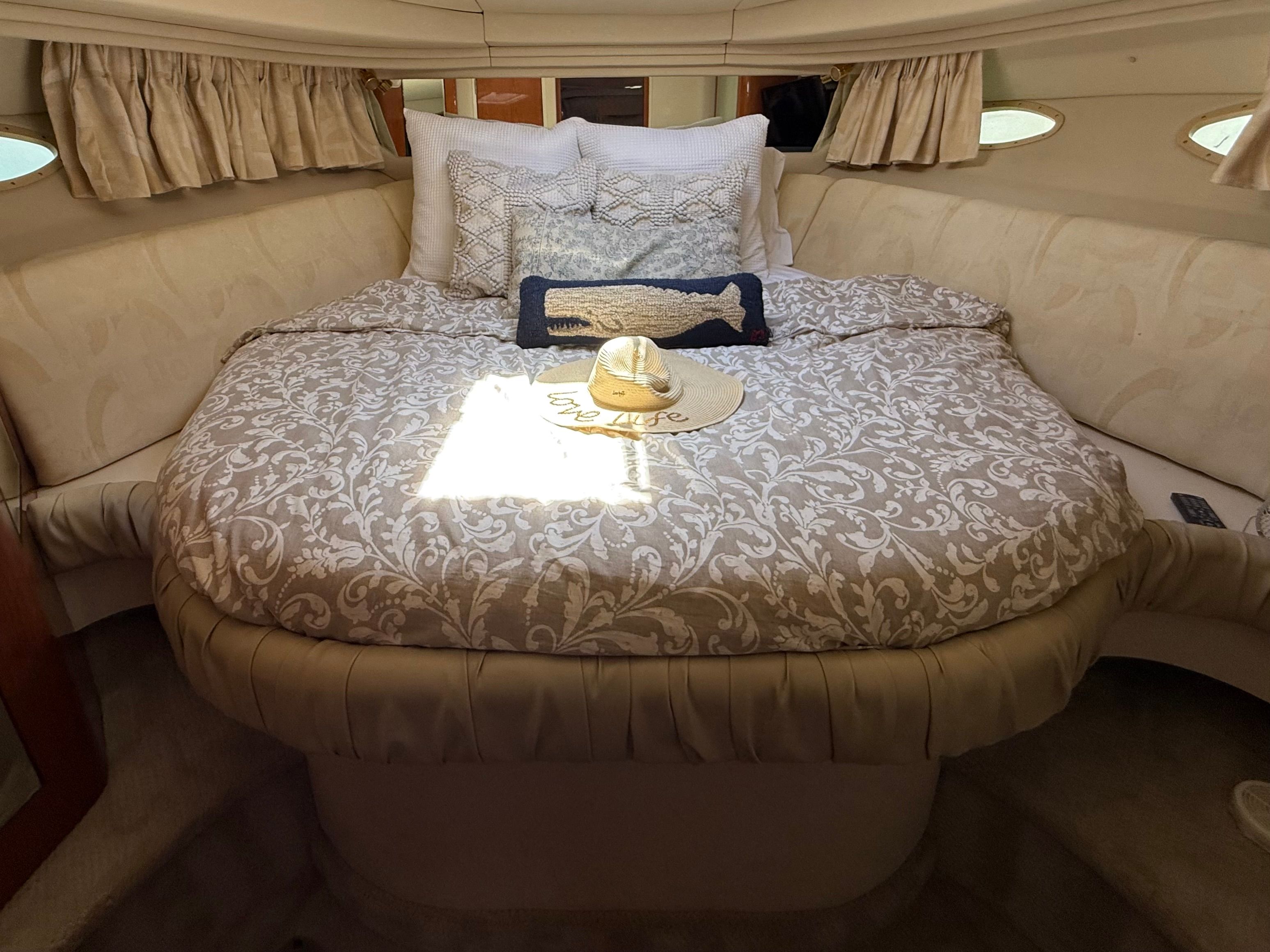 Powered by twin V-Drive 7.4L MerCruiser MPI Horizon 454 Mag engines delivering a total of 380 HP, she provides smooth and reliable performance. The engines have only 667 hours, and a 7.2 KW Westerbeke generator powers all systems whether you're underway or anchored in a quiet cove.
