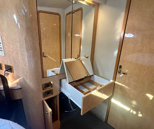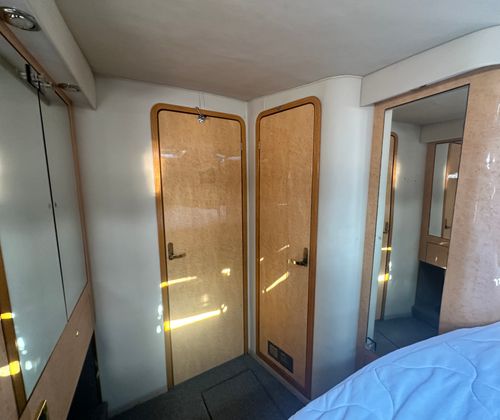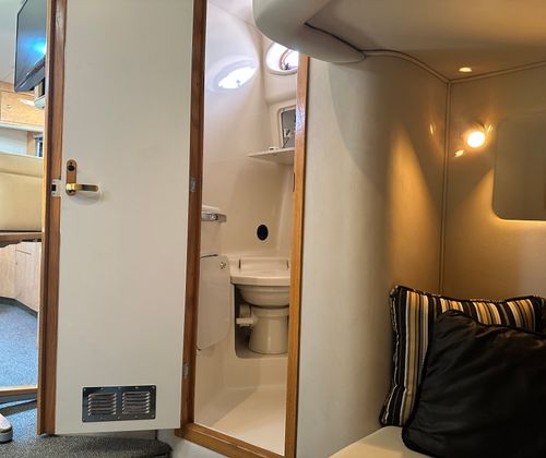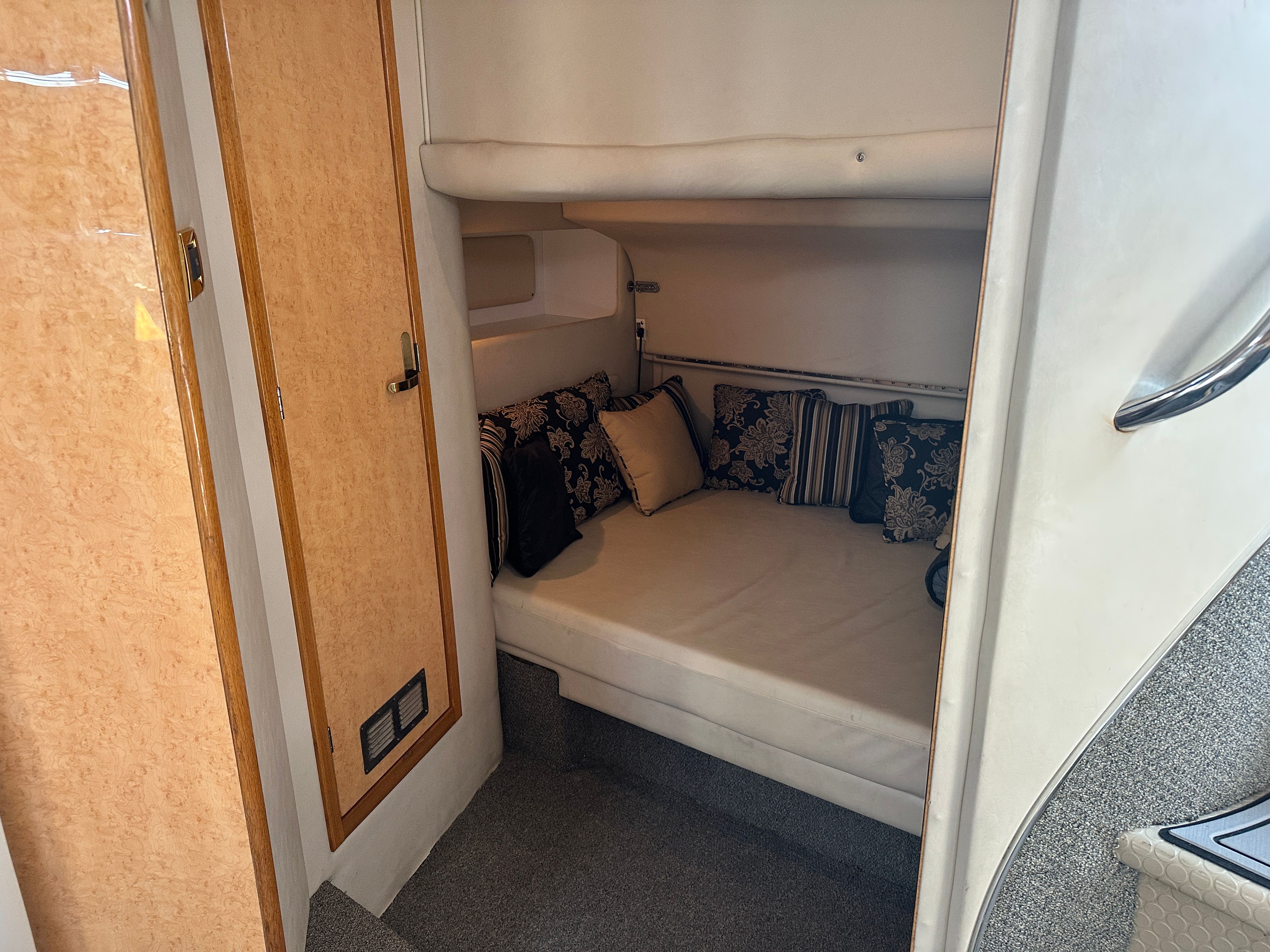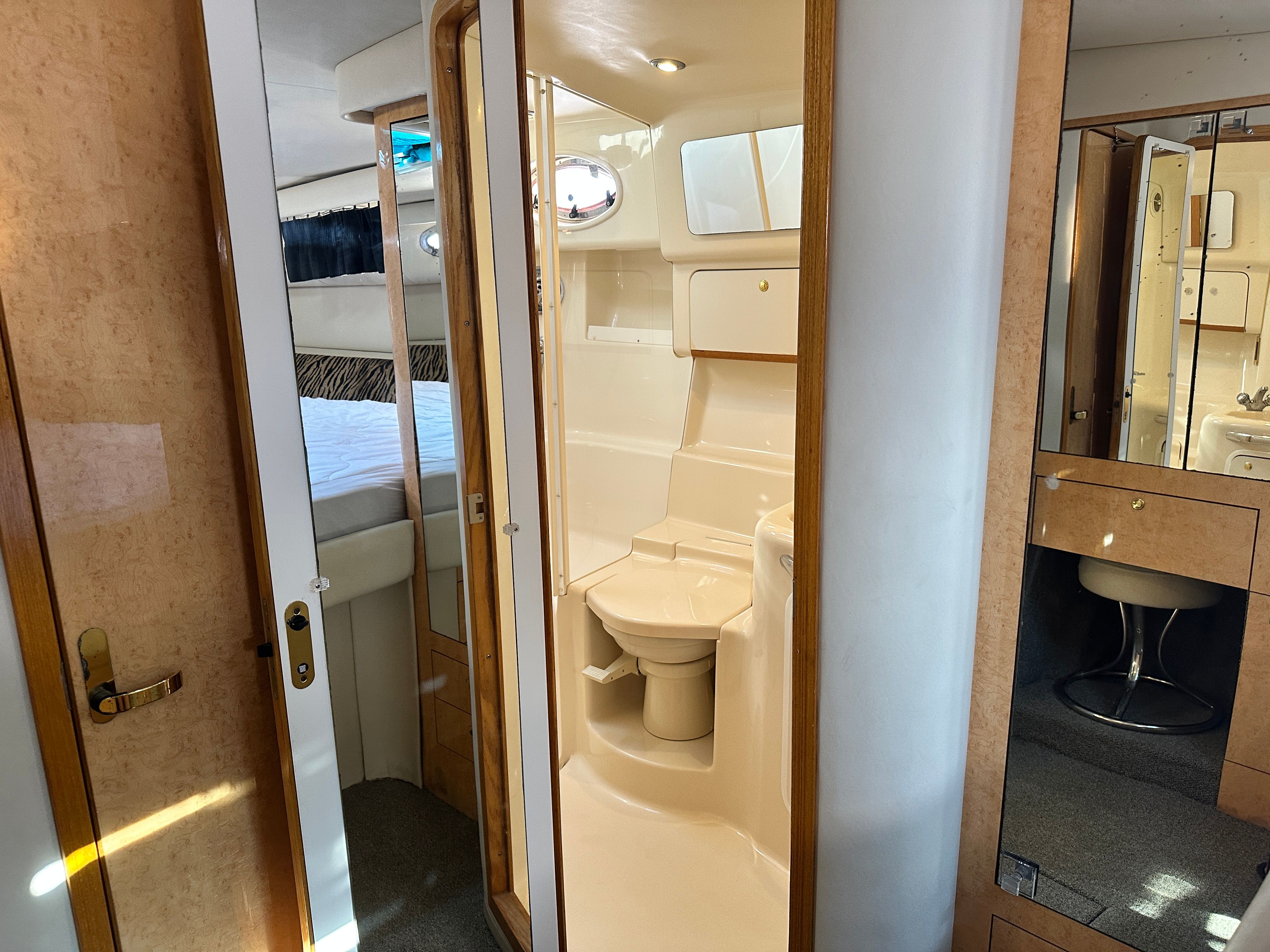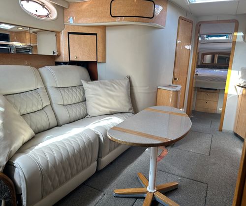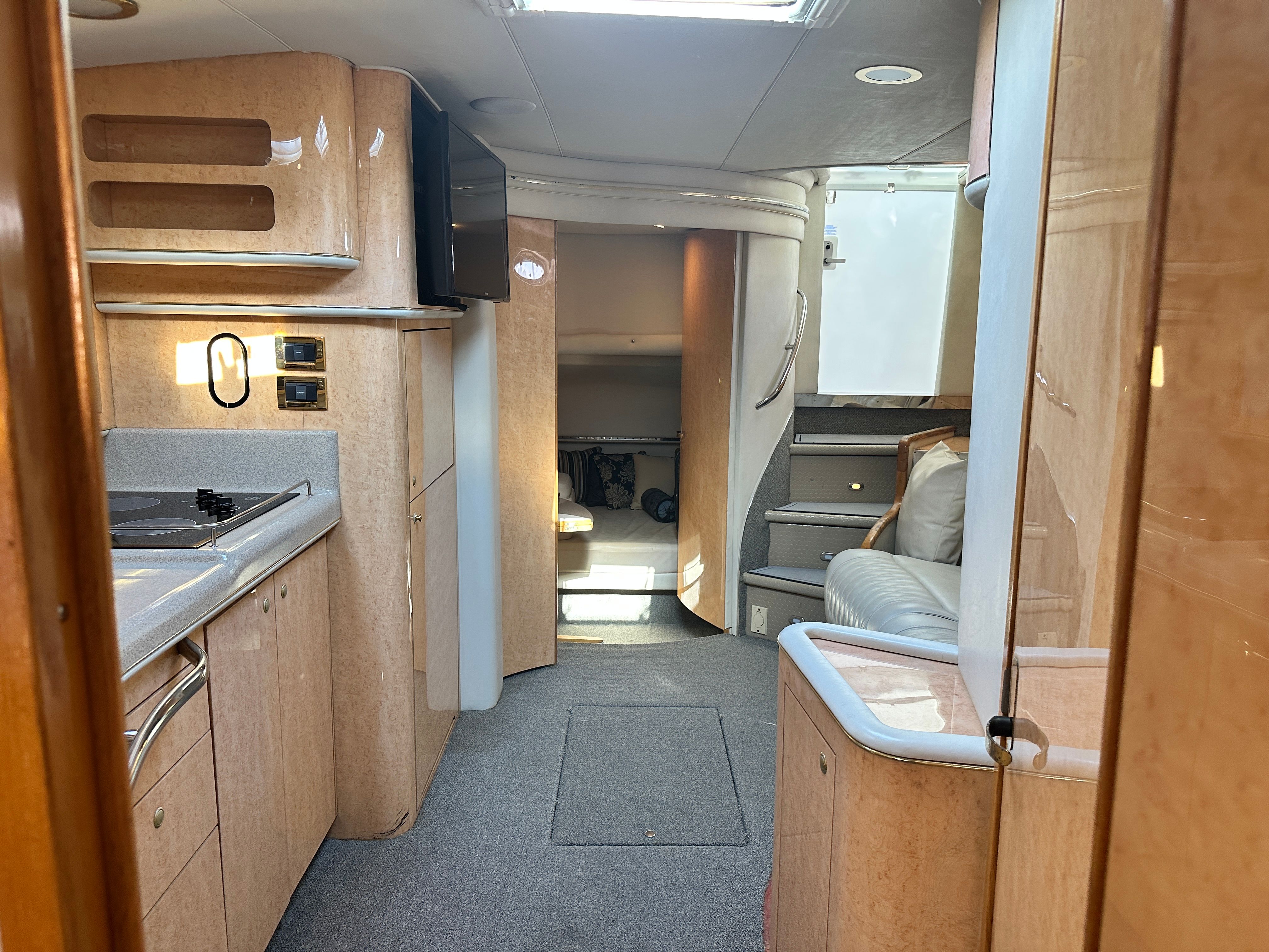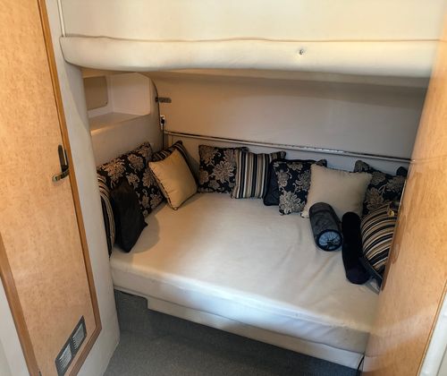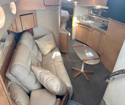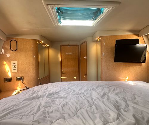 This cruiser boat for sale is designed with practicality in mind. Its generous length provides plenty of storage options for gear, supplies, and personal items, making it easy to stay organized during longer trips. The twin-engine configuration not only enhances performance but also simplifies docking and maneuvering, giving you confidence in any marina or harbor. Fuel efficiency is another key advantage, allowing you to enjoy extended outings without frequent stops for refueling. The Sundancer 450’s thoughtful layout and reliable systems make ownership hassle-free, so you can focus on enjoying your time on the water.