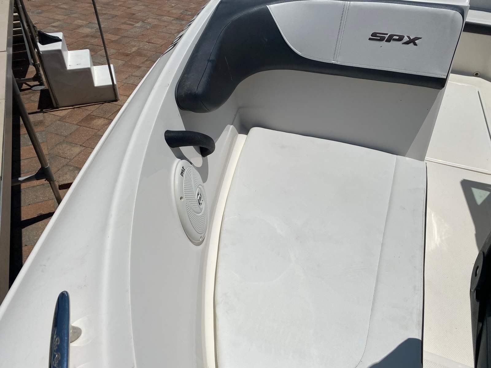 The Sea Ray SVX 19 comes equipped with features designed to enhance your boating experience. As a Bowrider, it offers an open and inviting layout, perfect for socializing and soaking up the sun. The spacious bow seating area provides plenty of room for guests to relax, while the ergonomic helm ensures comfortable control for the captain. The 19-foot length allows for ample deck space without sacrificing agility, making it easy to navigate tight marinas and busy waterways.This used Sea Ray boat for sale is built with quality materials and craftsmanship, ensuring durability and longevity. The thoughtful design includes convenient storage compartments for your gear, life jackets, and water toys, helping you keep the deck clutter-free and organized. The SVX 19’s sleek exterior and modern finishes make it a standout on the water, while its practical layout ensures everyone on board enjoys maximum comfort.
