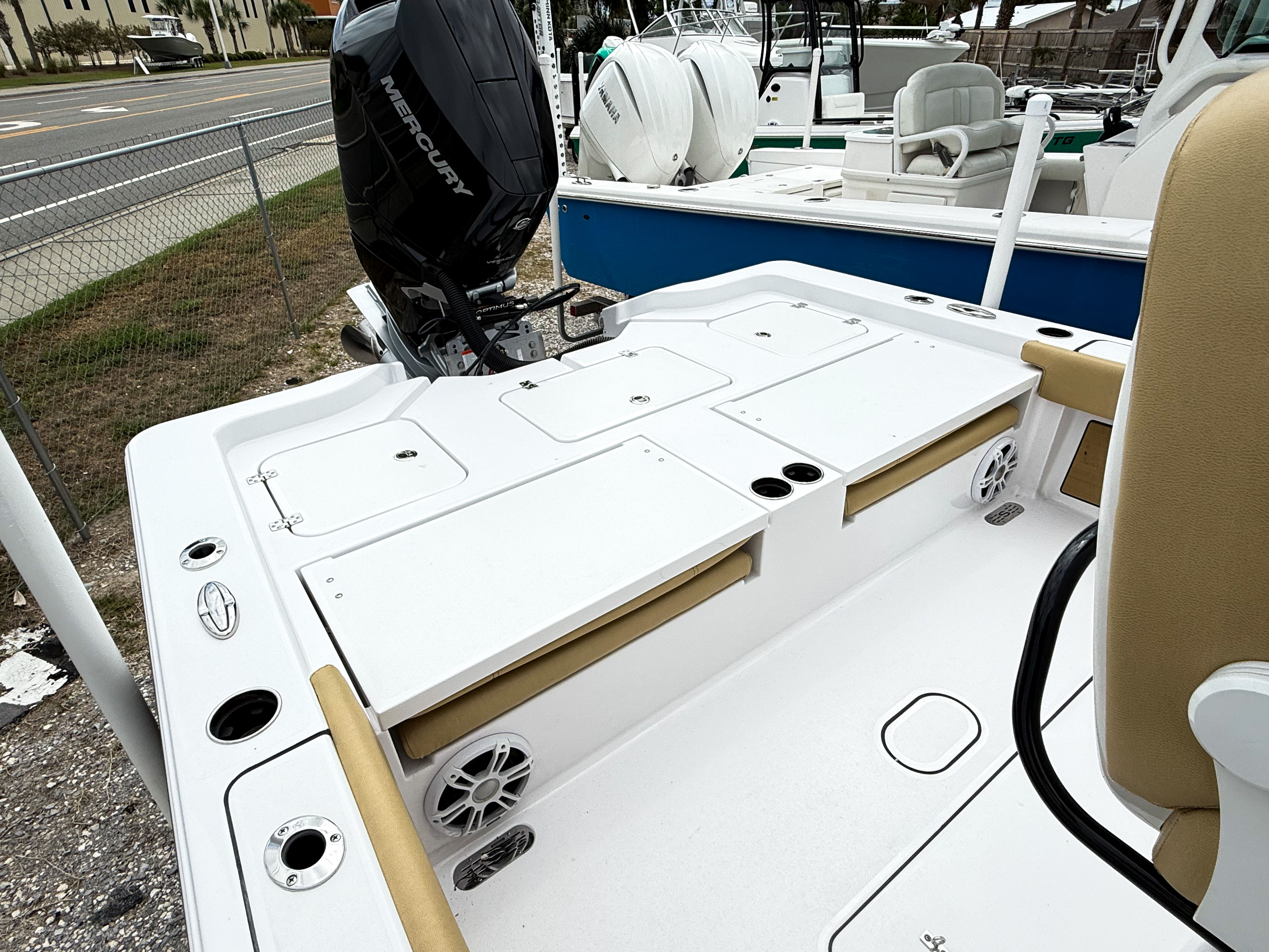 At the heart of the Sportsman Masters 267 is a single, powerful engine delivering an impressive 400 horsepower. This setup provides exhilarating acceleration and top-end speed, making it perfect for both cruising and high-energy water sports. The responsive handling and efficient hull design ensure that you can navigate tight turns, shallow waters, and open seas with confidence. Whether you’re heading out for a quick spin or a full day on the water, the engine’s reliability and power make every trip enjoyable and stress-free.