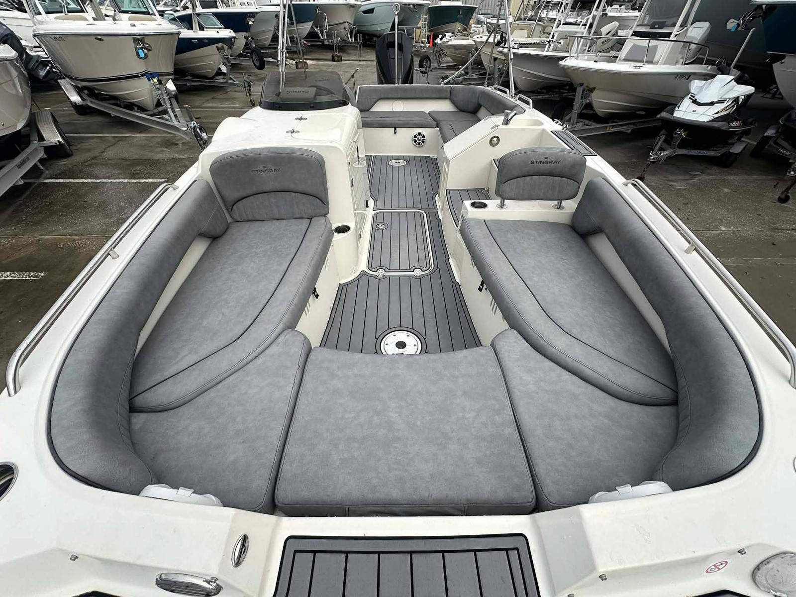 The Stingray 212 SC is packed with features that elevate your time on the water. Its spacious bow seating area invites guests to stretch out and enjoy the breeze, while the open cockpit design ensures everyone has plenty of room to move around. The ergonomic helm is thoughtfully laid out, giving the captain easy access to controls and clear sightlines for safe navigation. The 21-foot length provides a perfect balance between maneuverability and onboard space, making it easy to dock and store while still accommodating a group of friends or family.This bowrider is designed with both leisure and practicality in mind. The seating configuration encourages conversation and relaxation, while the swim platform at the stern makes it easy to take a dip or launch water toys. The Stingray 212 SC’s thoughtful layout ensures that every inch of space is utilized for comfort and convenience, making it a standout choice among bowrider boats for sale.