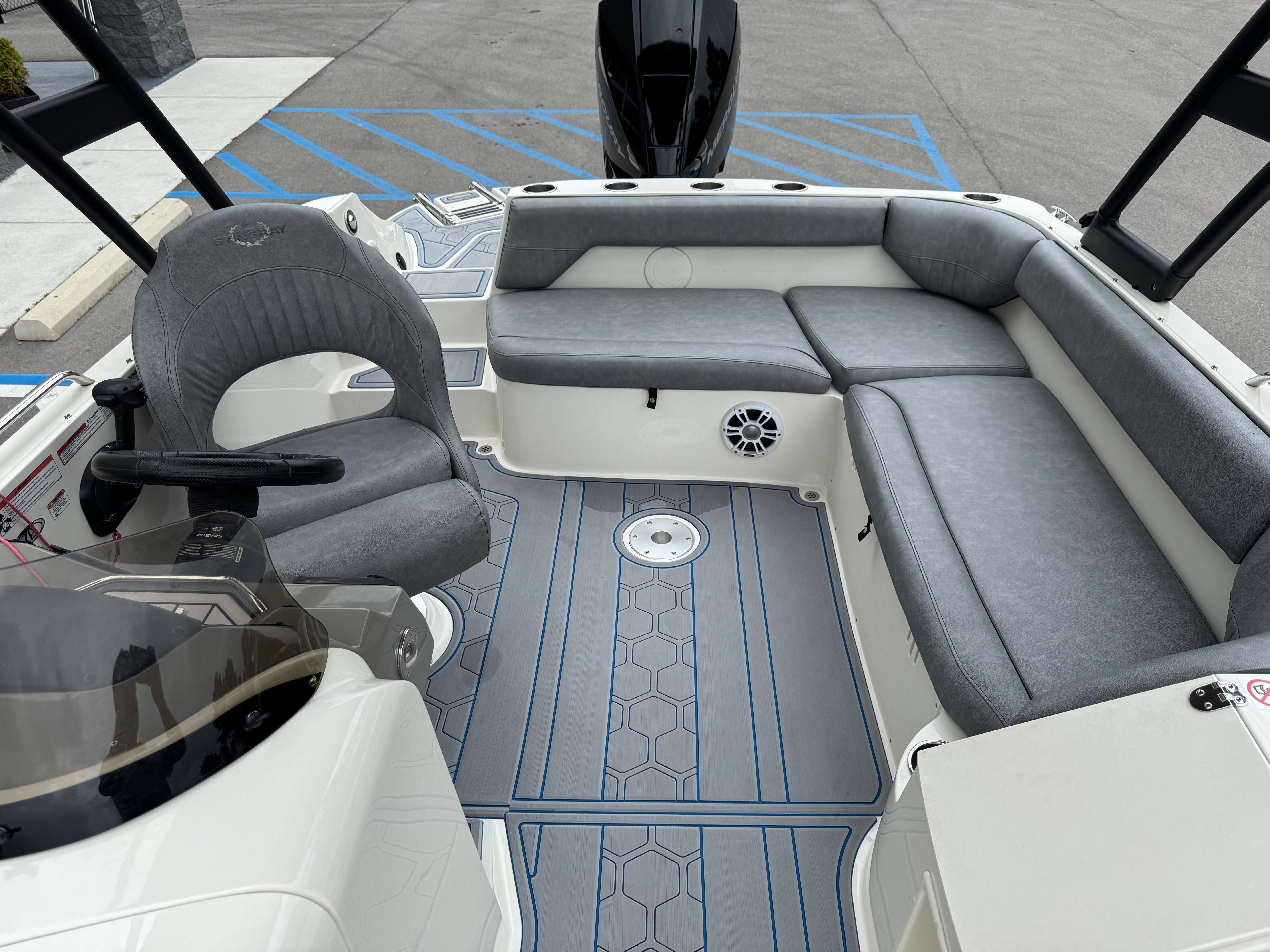 The Stingray 212 SC deckboat is designed with both fun and functionality in mind. Its spacious deck layout offers plenty of seating for family and friends, making it ideal for social gatherings, sunbathing, or simply relaxing with a cool drink in hand. The open design ensures everyone has a great view and easy access to the water, enhancing the overall boating experience.With a length of nearly 22 feet, this deckboat provides generous storage options for all your gear, from water sports equipment to picnic supplies. The thoughtful arrangement of seating and storage ensures a clutter-free environment, so you can focus on enjoying your time on the water.