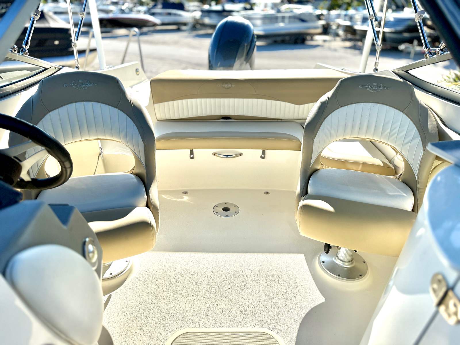 Powered by a single engine boasting 150 horsepower and only 180 engine hours, this Stingray boat for sale is engineered for smooth, responsive handling and efficient cruising. The 150 HP engine delivers the perfect balance of power and fuel efficiency, allowing you to zip across the lake or coast along scenic waterways with ease. Whether you’re towing water toys or enjoying a leisurely ride, the Stingray 214 LR’s performance ensures every outing is both thrilling and comfortable. The engine’s low hours reflect careful use and promise many more seasons of reliable operation.