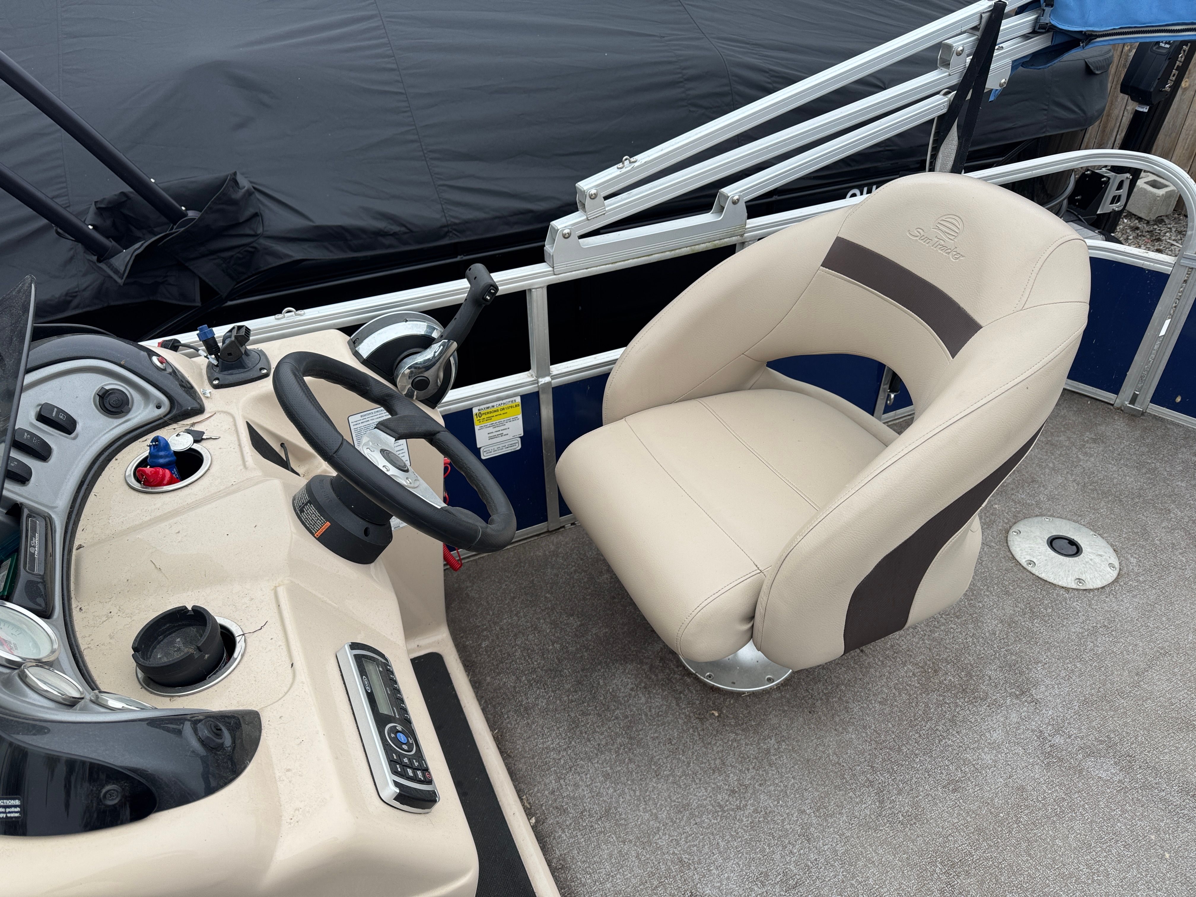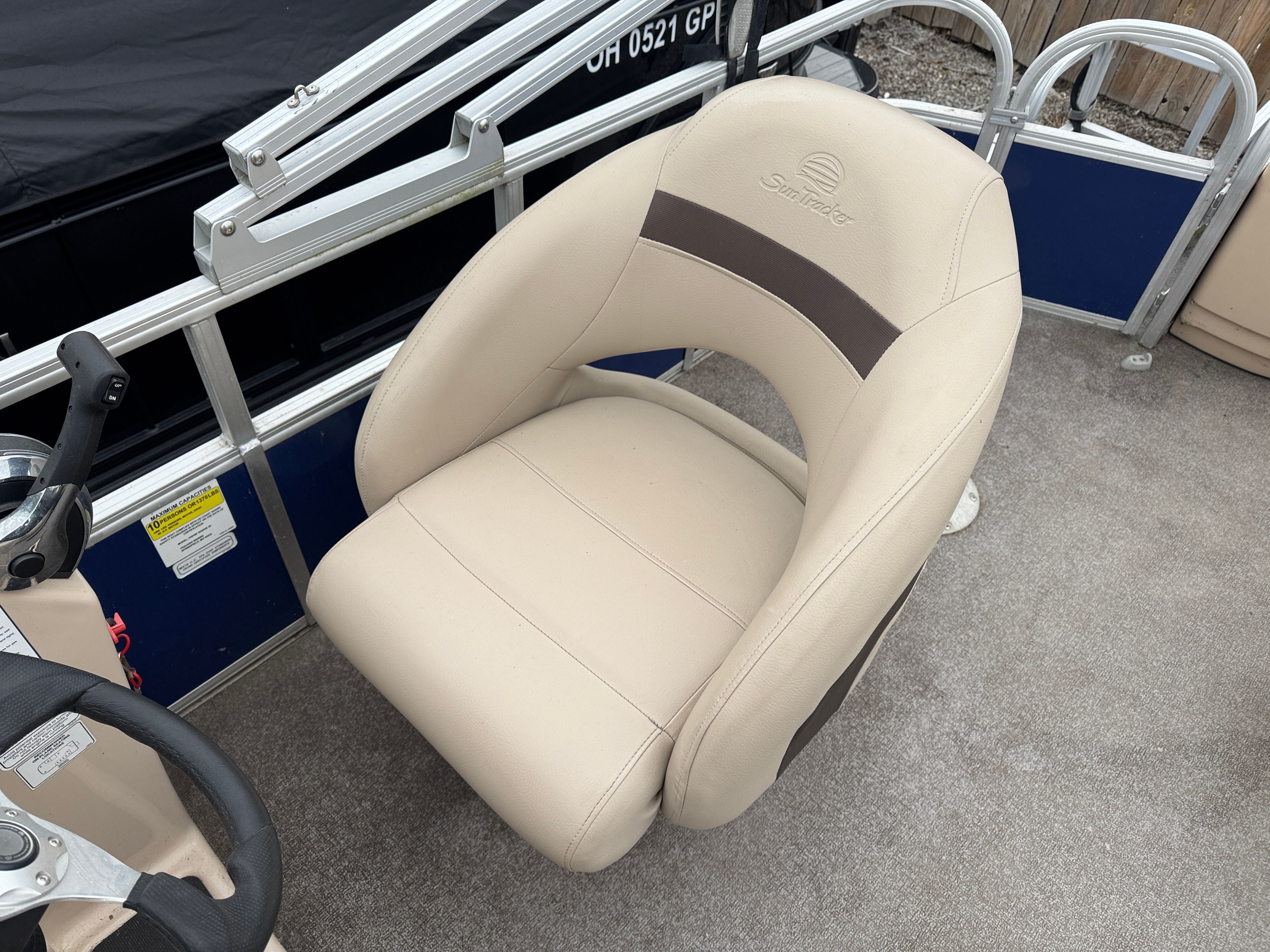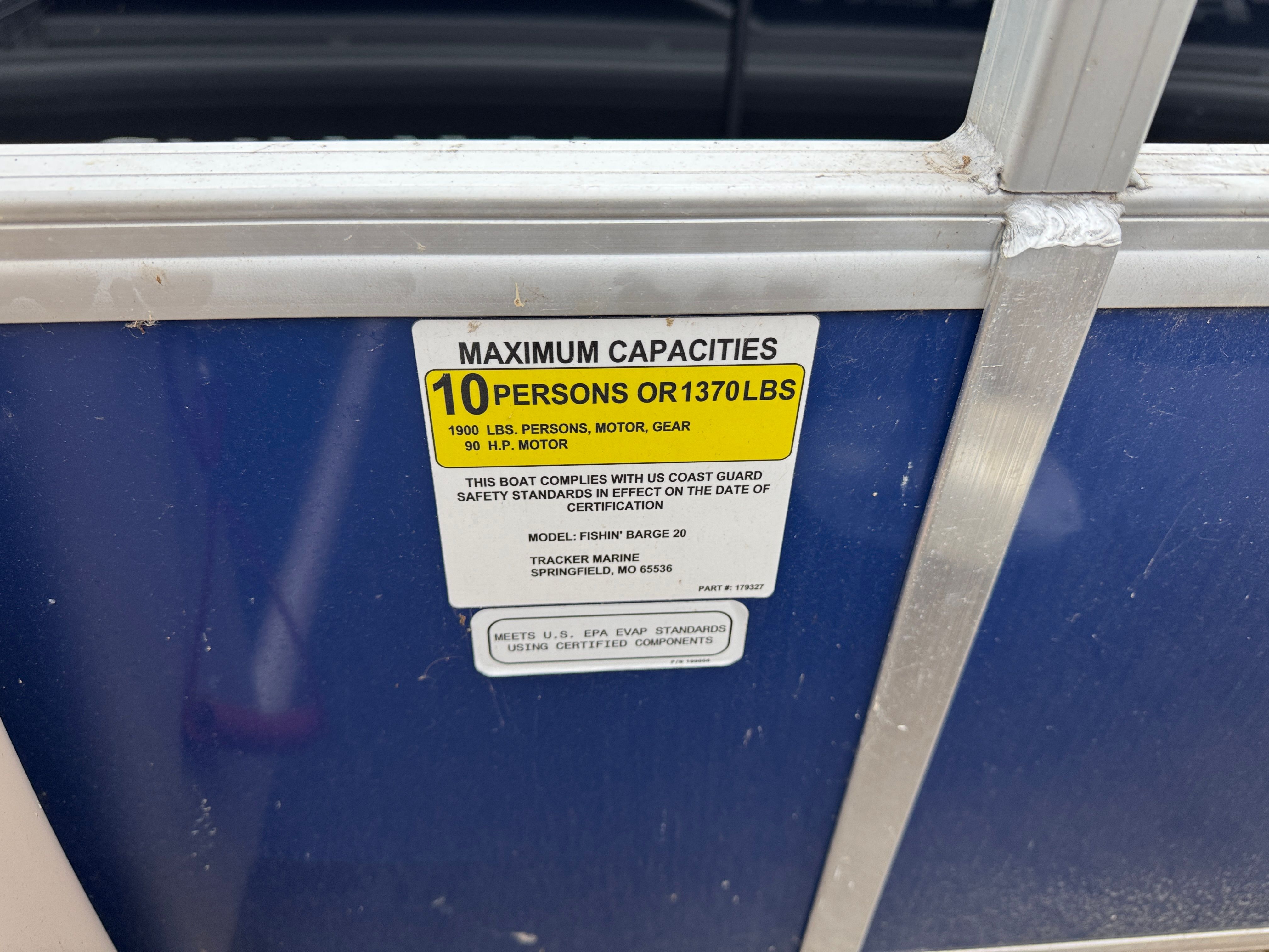 Powered by a reliable single engine with 60 horsepower, this Sun Tracker pontoon boat delivers smooth and efficient performance on the water. The 60 HP engine strikes a perfect balance between power and fuel efficiency, making it easy to cruise, fish, or simply relax without worrying about excessive fuel consumption. The engine’s responsive handling ensures that docking, maneuvering, and navigating tight spots are hassle-free, even for less experienced boaters. Whether you are towing a tube, heading to your favorite fishing spot, or enjoying a leisurely cruise, the Fishin Barge 20 DLX offers a dependable and enjoyable ride.