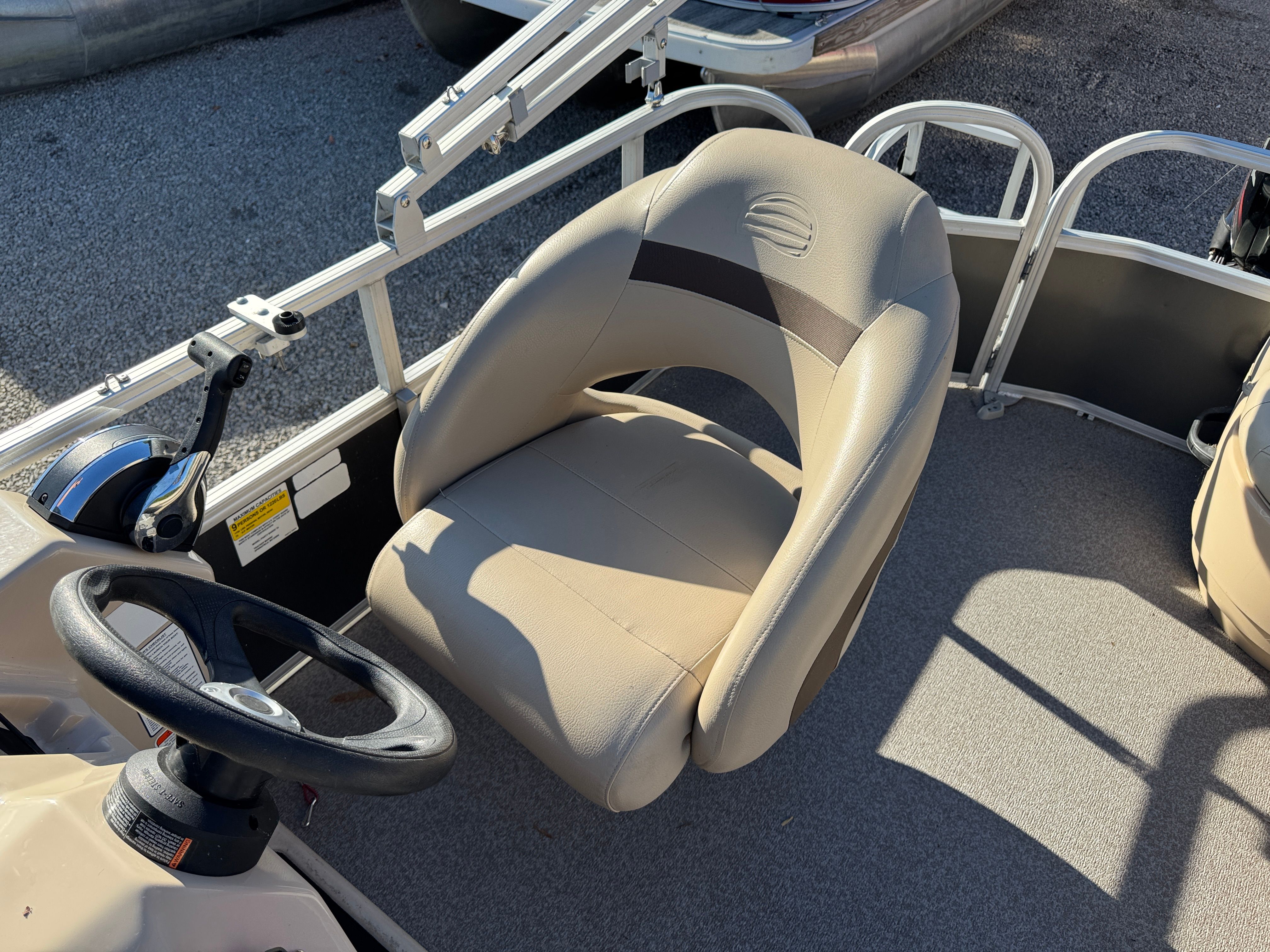 Powering the Sun Tracker PB 18 is a single engine with an impressive 75 horsepower. This setup ensures smooth acceleration, responsive handling, and efficient cruising speeds, whether you’re heading to your favorite fishing spot or exploring new waters. The engine’s reliable performance makes it easy to navigate tight turns, shallow areas, and open stretches, giving you the confidence to tackle a variety of boating conditions. With its well-balanced hull design, the PB 18 offers stability and maneuverability, making every outing enjoyable and stress-free.
