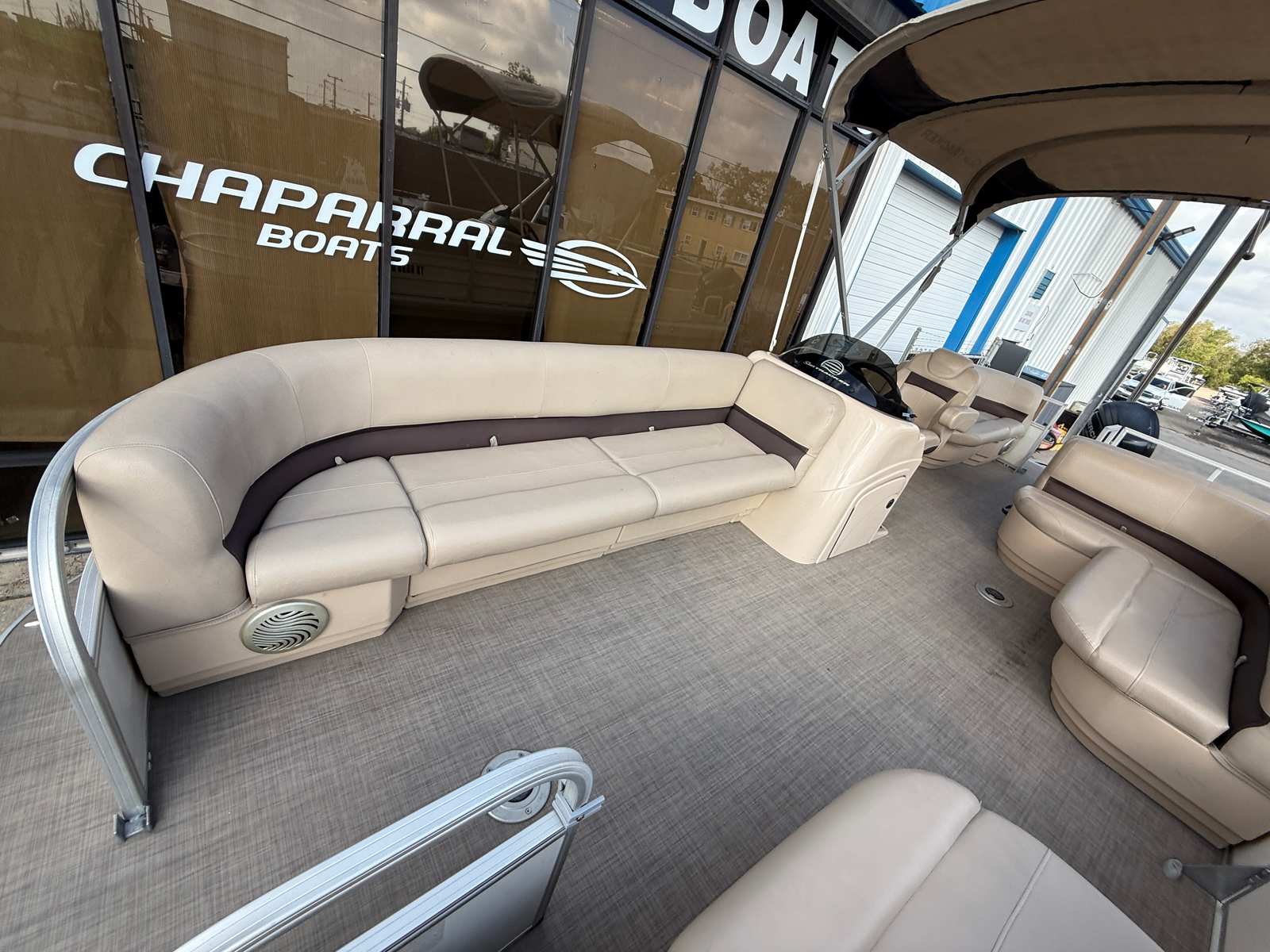 Powering this Sun Tracker Party Barge 22 is a single engine with an impressive 115 horsepower. This setup ensures smooth cruising, responsive handling, and enough power to tow water toys or reach your favorite swimming spot with ease. The engine’s reliable performance means you can focus on making memories, not worrying about getting there. Whether you are gliding across calm waters or navigating a busy marina, the Party Barge 22’s engine delivers a satisfying blend of efficiency and excitement.