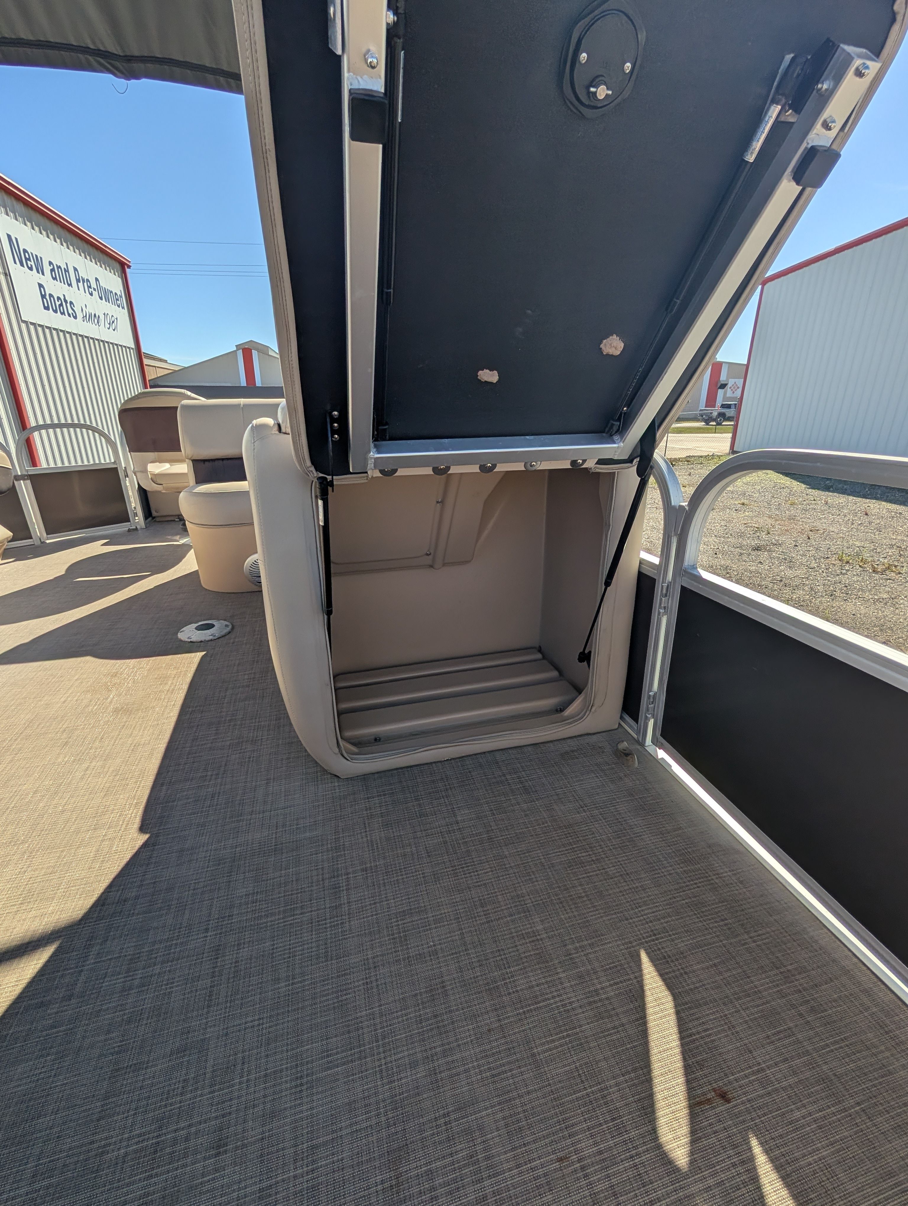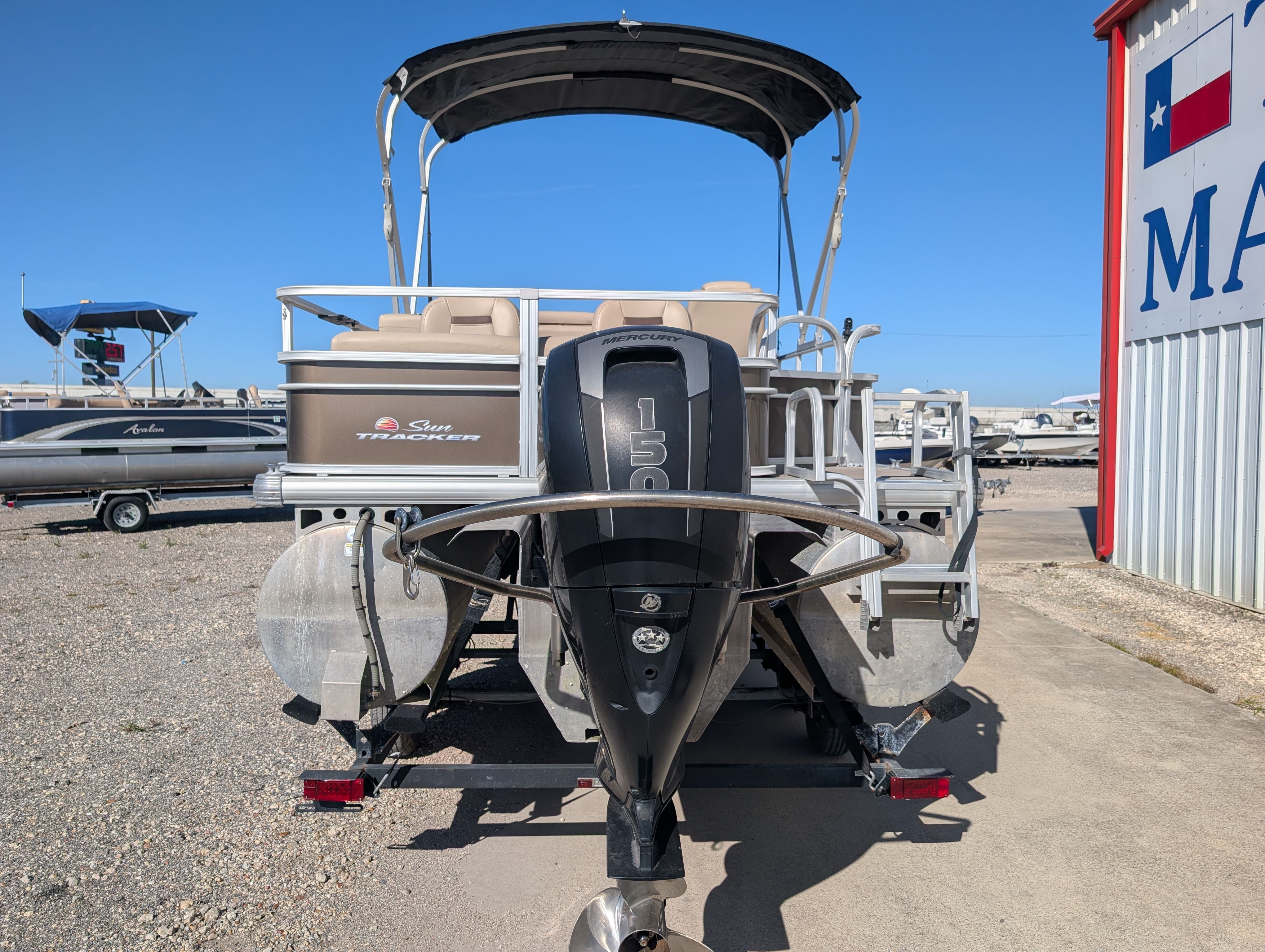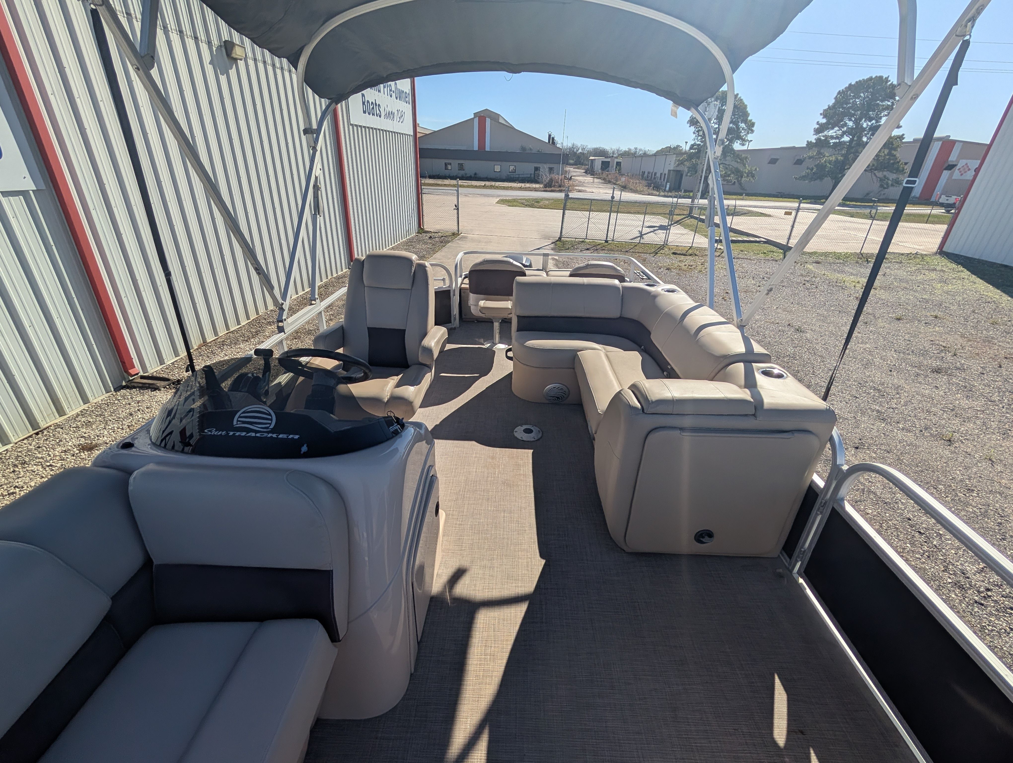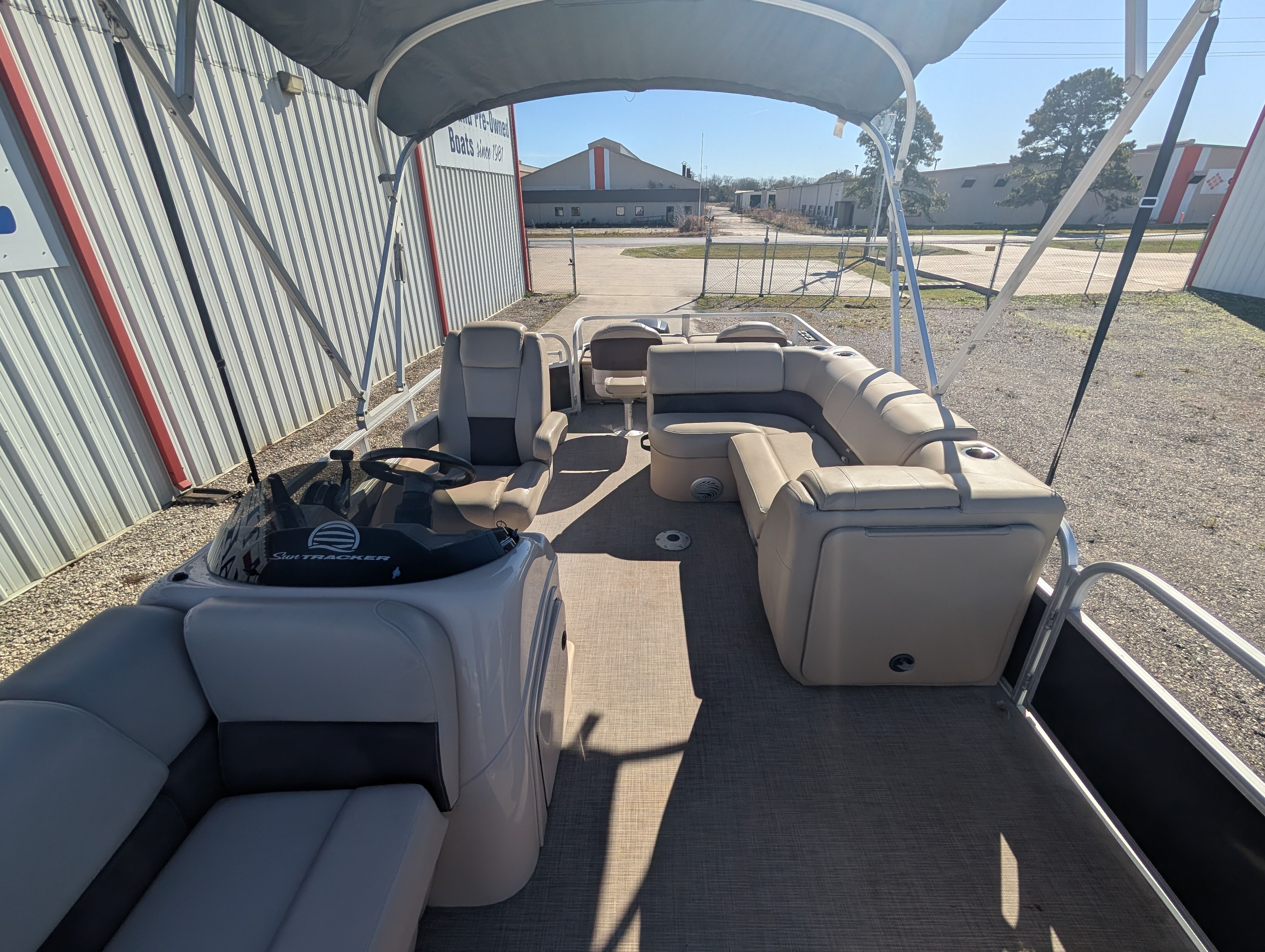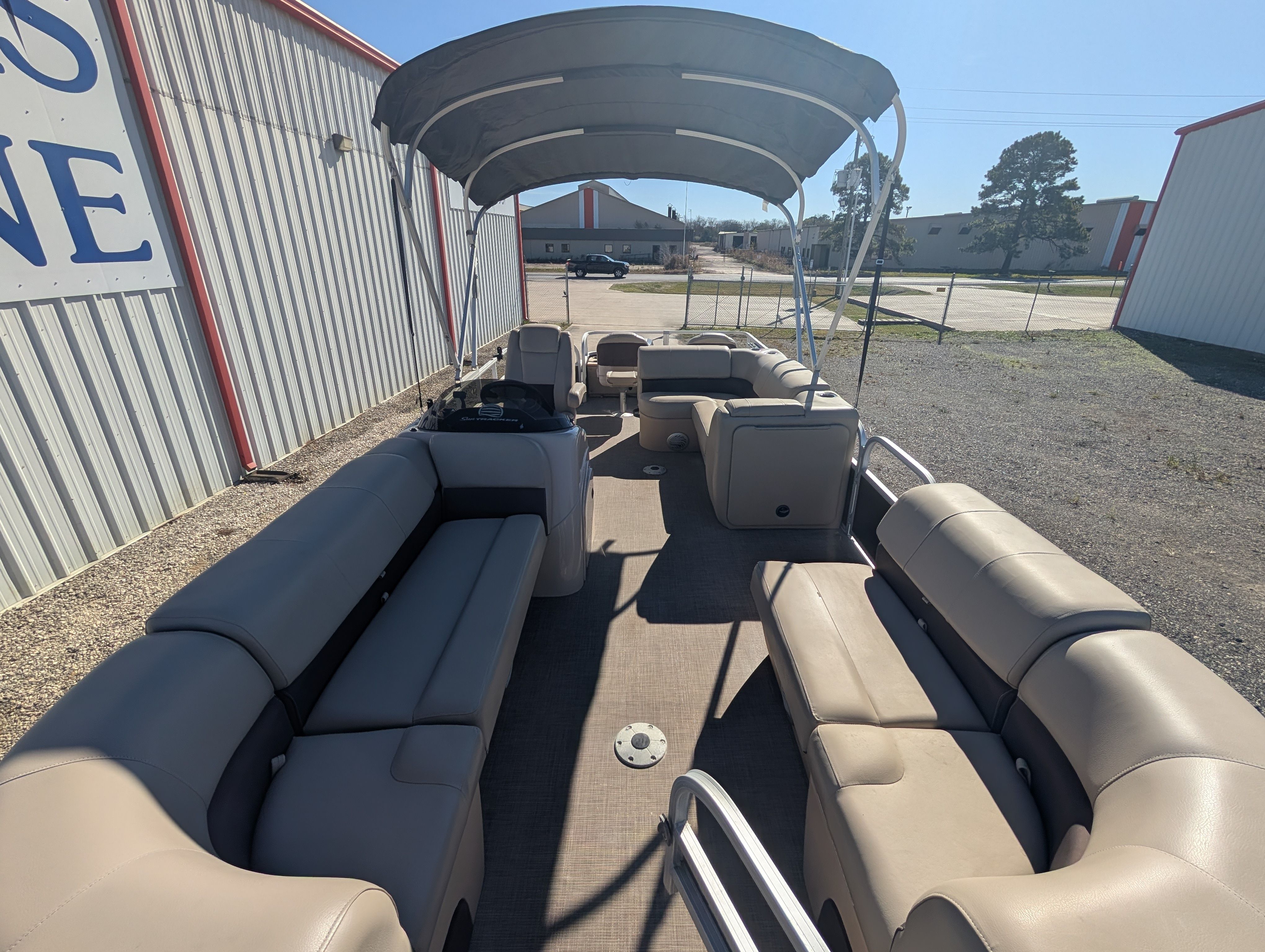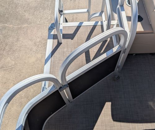 This Sun Tracker boat for sale comes loaded with special features designed to enhance your boating experience. The tandem axle trailer with swing tongue makes transporting and storing your pontoon boat a breeze, offering added convenience and flexibility. The spacious bimini provides much-needed shade on sunny days, ensuring comfort for everyone on board. For entertainment, the Bluetooth stereo lets you stream your favorite music and set the perfect mood for any outing. Anglers will appreciate the Lowrance Hook 9, a powerful fishfinder that helps you locate the best fishing spots with ease. These features combine to create a pontoon boat that’s ready for adventure, relaxation, and everything in between.