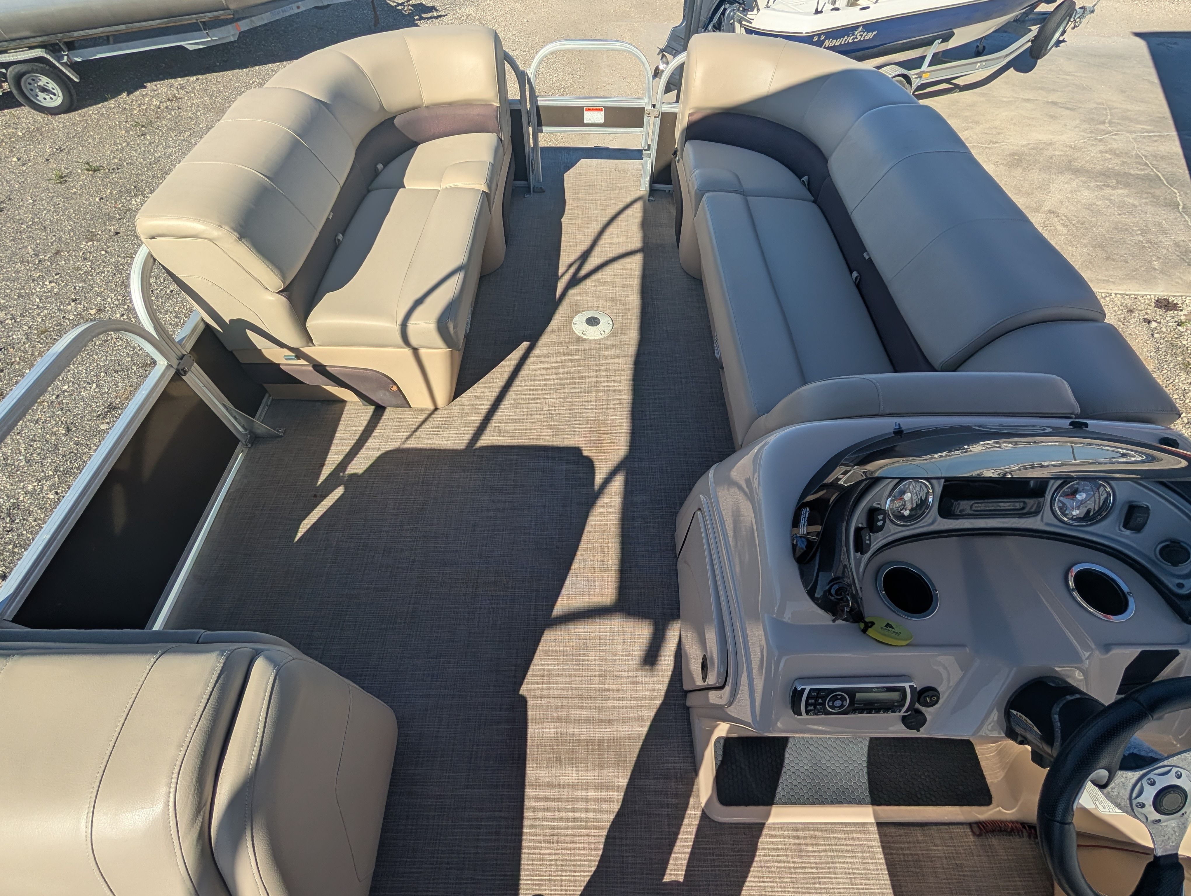 Owning the Sun Tracker Sport Fish 22 XP3 means enjoying the best of both worlds: relaxation and excitement. The roomy deck layout is perfect for socializing, with plenty of seating for guests to lounge, chat, and soak up the sun. The pontoon’s stable design ensures a smooth ride, even when the water gets choppy, so everyone can feel comfortable and secure. Whether you’re hosting a family picnic, celebrating a special occasion, or simply unwinding after a long week, this pontoon boat creates the ideal setting for making lasting memories. The Bluetooth stereo adds a lively soundtrack to your adventures, while the bimini keeps everyone cool and protected from the sun.