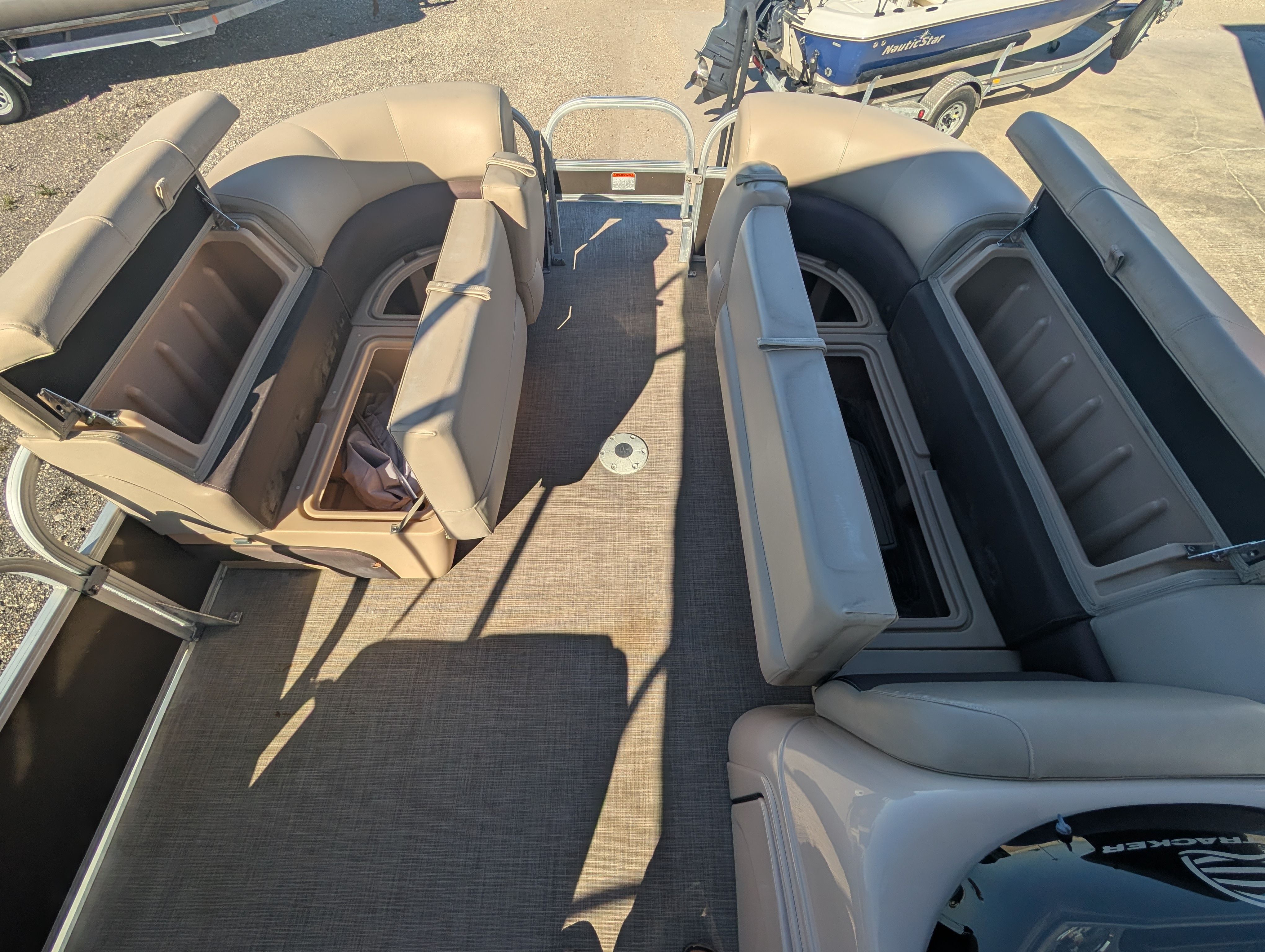 Practicality is at the heart of the Sun Tracker Sport Fish 22 XP3. The tandem axle trailer with swing tongue simplifies launching and retrieving your boat, making it easy to hit the water whenever the mood strikes. The pontoon’s spacious layout provides ample storage for gear, snacks, and personal items, so you can pack everything you need for a full day of fun. Docking is a breeze thanks to the boat’s maneuverable design, and the efficient engine helps keep operating costs low. Whether you’re planning a quick afternoon escape or a full weekend adventure, this pontoon boat adapts to your needs and makes every outing more enjoyable.