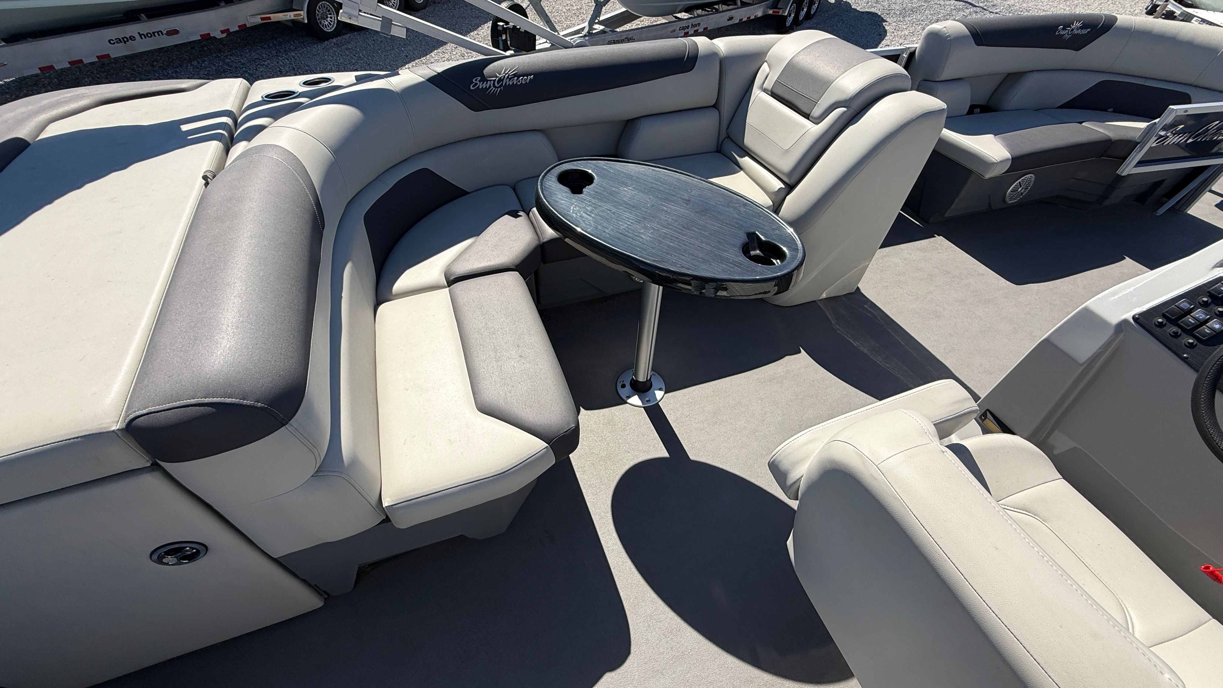 This Sunchaser boat for sale is as practical as it is fun. The 22-foot length strikes the perfect balance between spaciousness and maneuverability, making it easy to dock and store. The single 115 horsepower engine is fuel-efficient, helping you make the most of every trip without breaking the bank. Ample storage compartments keep your essentials organized and within reach, so you can focus on enjoying your time on the water.The pontoon’s design also makes it easy to board and disembark, whether you are at the dock or anchored in a quiet cove. Its sturdy construction and reliable performance mean you can venture out with confidence, knowing your boat is built to handle whatever the day brings. Maintenance is straightforward, thanks to the single-engine setup and durable materials used throughout the boat.