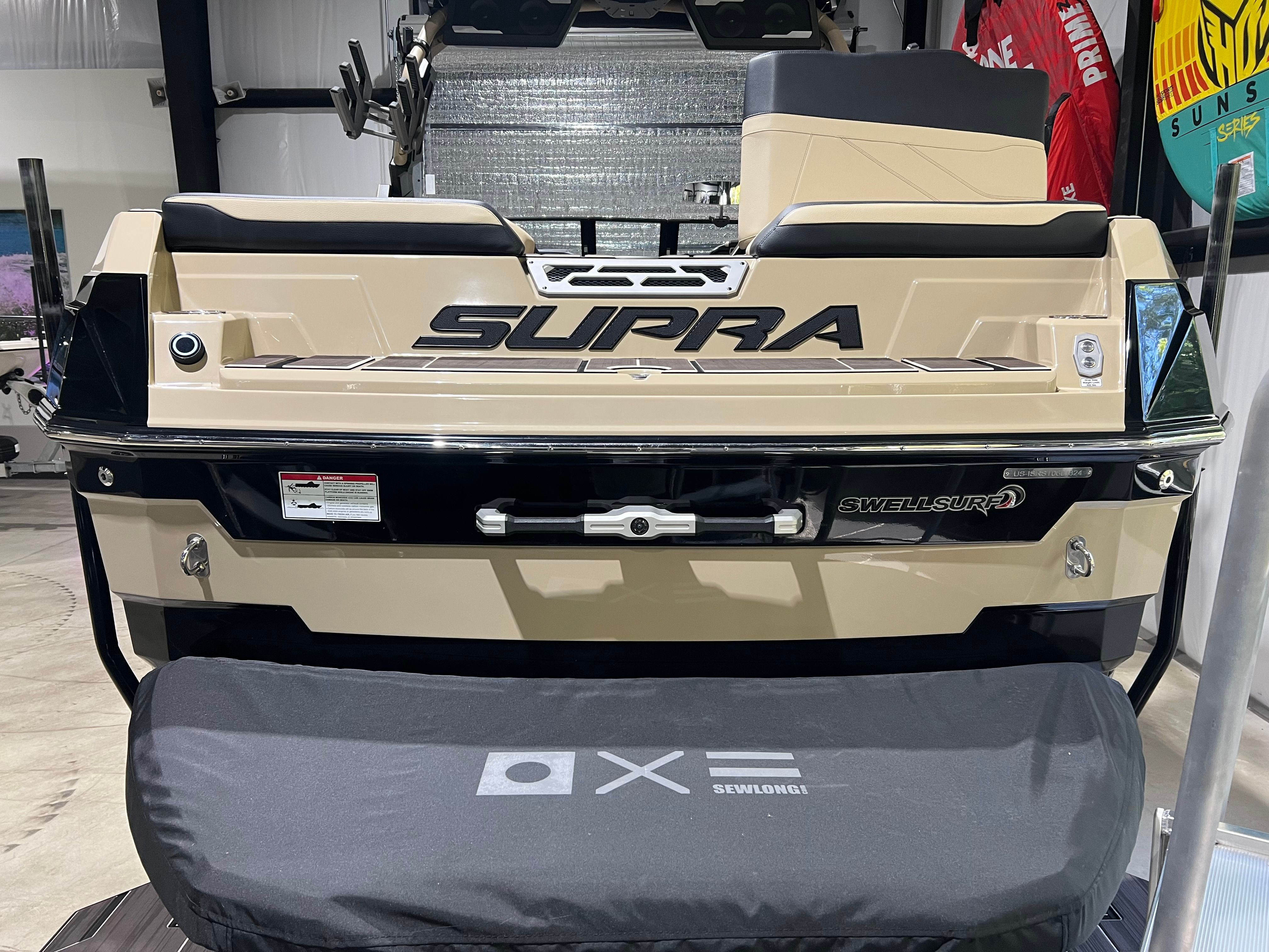The Supra SE 450 is loaded with features designed to enhance your time on the water. Its spacious 24.5-foot layout provides plenty of room for friends, family, and all your water sports equipment. The boat’s sleek profile and modern styling are complemented by high-quality materials and attention to detail throughout the interior and exterior. Special features include a state-of-the-art wake system that allows you to customize the size and shape of your wakes, ensuring optimal conditions for every rider. The intuitive controls and ergonomic seating make operation effortless, while the advanced audio system lets you enjoy your favorite tunes as you cruise or ride.