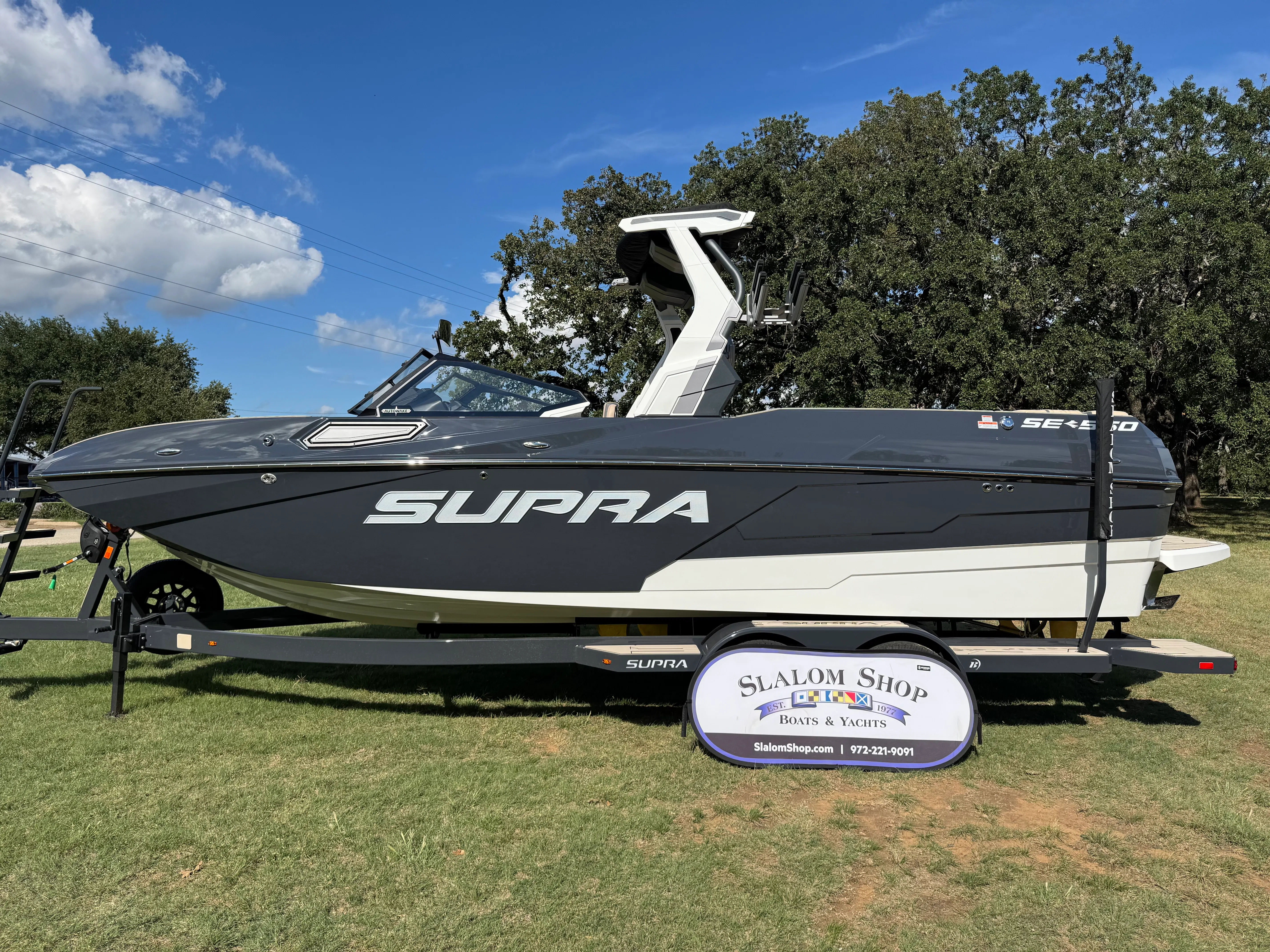 In summary, the 2026 Supra SE 550 Ski & Wakeboard boat for sale is a top-tier choice for anyone seeking the perfect blend of performance, style, and versatility. With its robust Ford Raptor 575 6.2L engine by Indmar, CNC 4-blade prop, dual stern thrusters, battery pack, electric power assist steering, and premium design accents, this Supra boat for sale offers everything you need for endless fun and relaxation on the water. Don’t miss your chance to own this exceptional vessel – contact the dealer today to learn more and start your next adventure with the Supra SE 550.