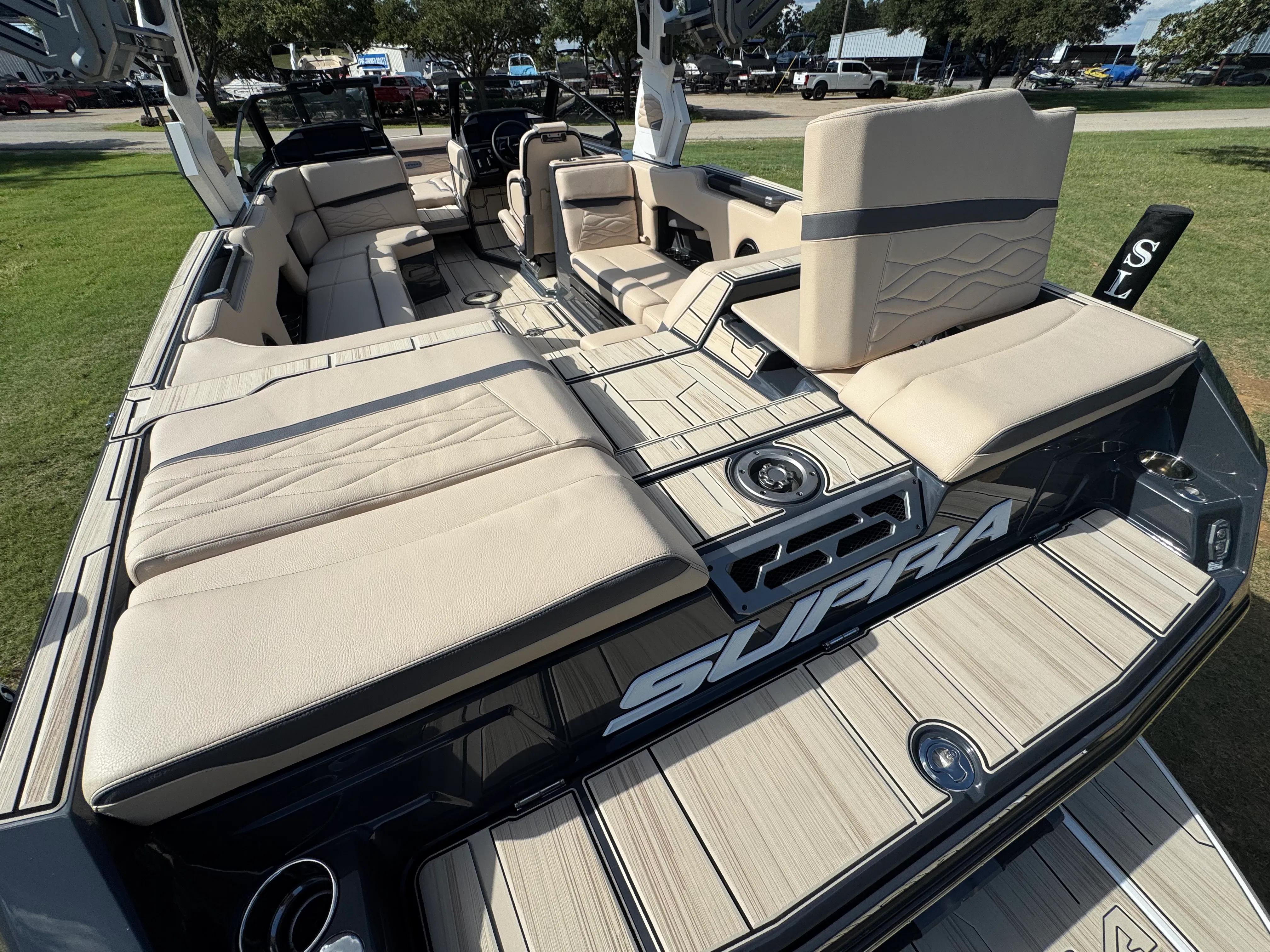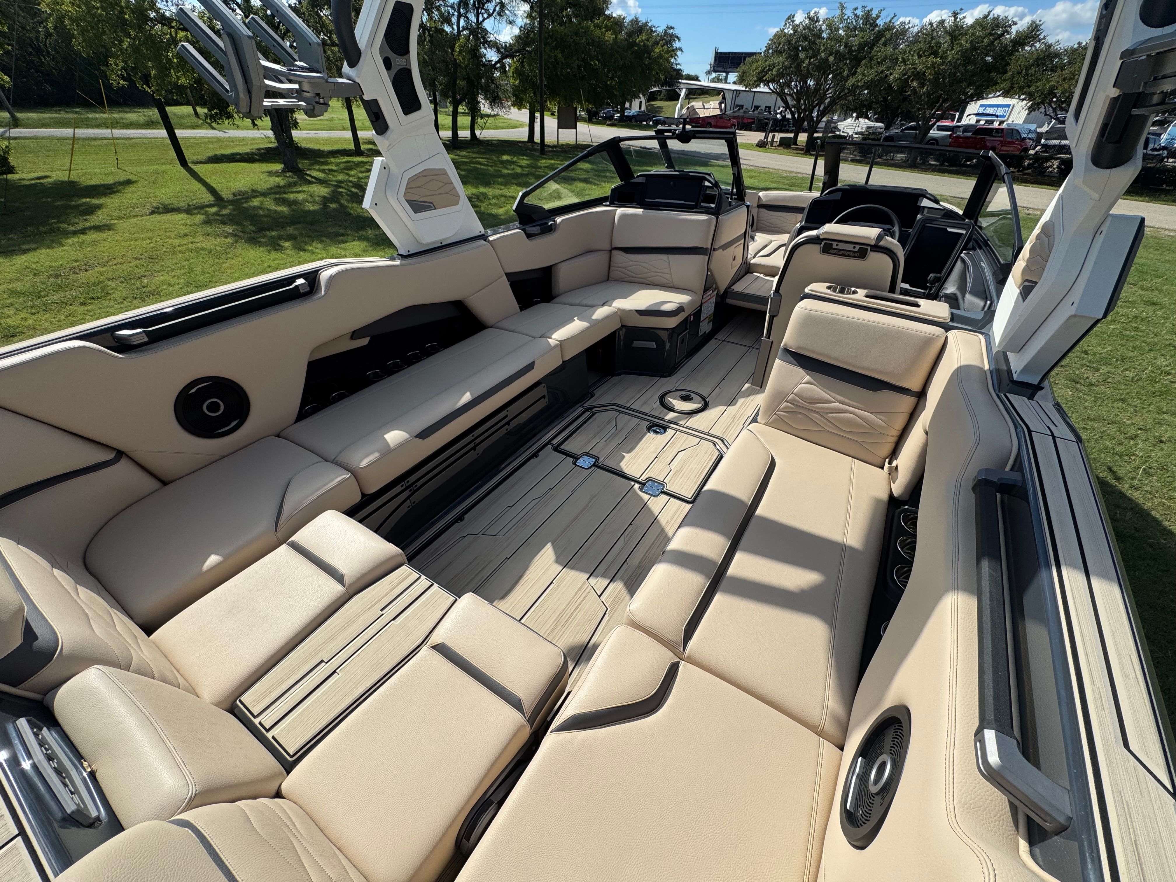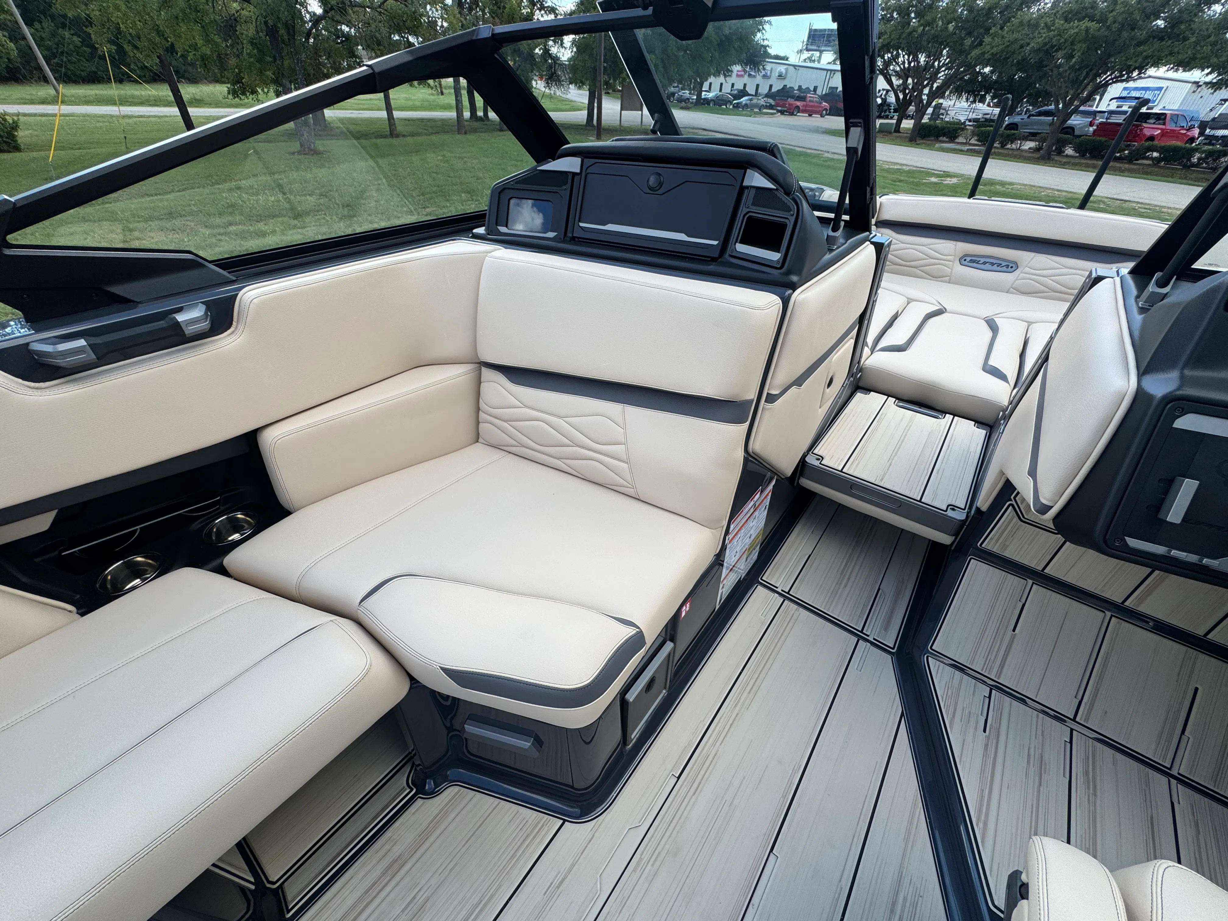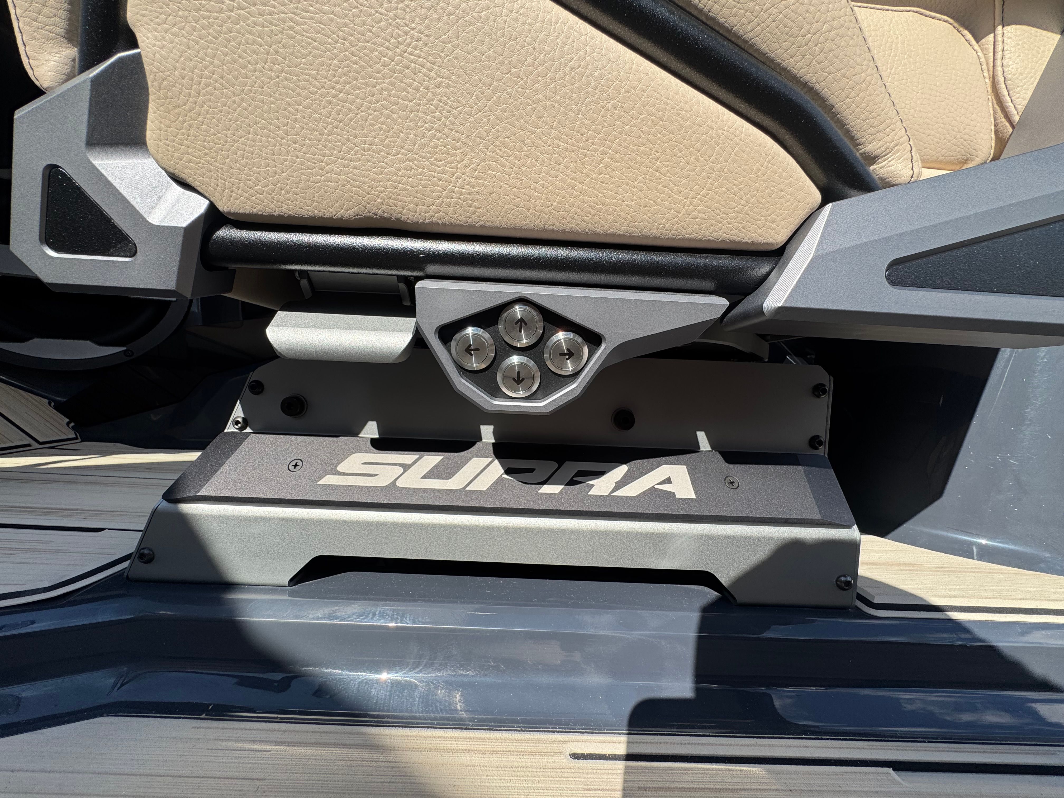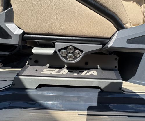 Beyond its impressive performance and stylish looks, the Supra SE 550 is designed with practicality in mind. Dual stern thrusters make docking and maneuvering in tight spaces a breeze, reducing stress and enhancing safety. The battery pack provides dependable power for extended outings, so you can focus on having fun without worrying about running out of juice. The ClampForce board rack keeps your gear organized and easily accessible, while the electric power assist steering ensures effortless handling for captains of all skill levels. With ample storage throughout the boat, you’ll have plenty of room for towels, snacks, and other essentials, making every trip convenient and enjoyable.