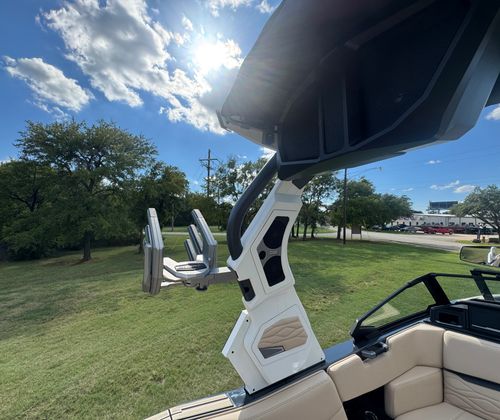 The Supra SE 550 is loaded with advanced features designed to maximize your enjoyment and convenience on the water. The battery pack ensures reliable power for all your onboard electronics and accessories, while the deck’s forward accent and main panel in Dark Graphite add a touch of elegance to the boat’s interior. The tower main color option in 01-White, paired with tower accents in 03-Dark Graphite, not only enhances the boat’s visual appeal but also provides a sturdy platform for mounting accessories and speakers. The ClampForce board rack offers secure and easy storage for your wakeboards, keeping them organized and ready for action.