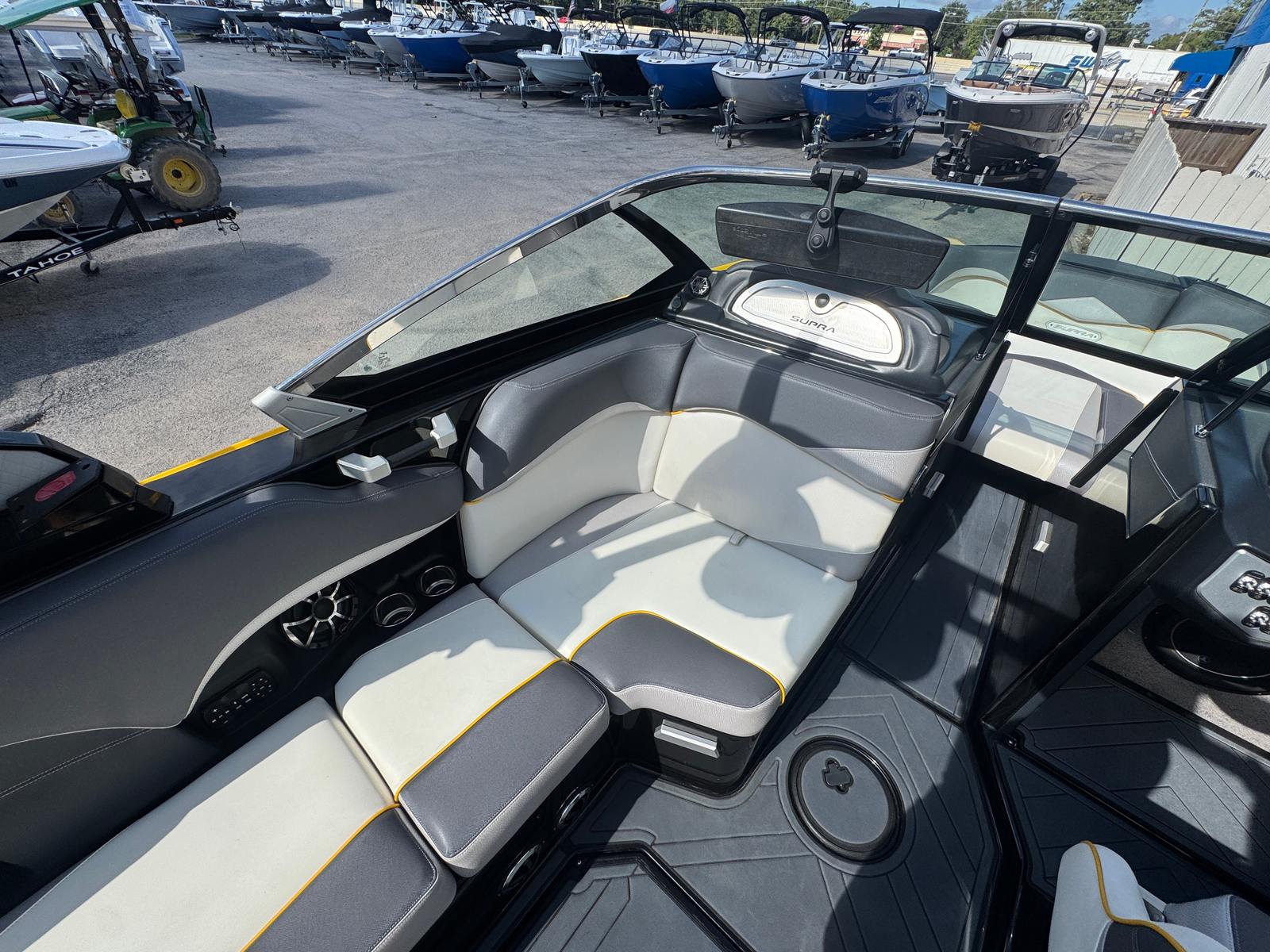 The 2017 Supra SE 550 stands out as a top-tier Ski & Wakeboard boat, boasting a commanding presence with its 24.5-foot length. Its sleek, modern design is matched by robust construction, ensuring both durability and eye-catching appeal. With only 325 engine hours, this used Supra boat for sale has been well cared for, offering you many more seasons of fun and excitement. Whether you are a seasoned wakeboarder, a family looking for weekend thrills, or someone who appreciates the finer things in boating, the Supra SE 550 is designed to impress.