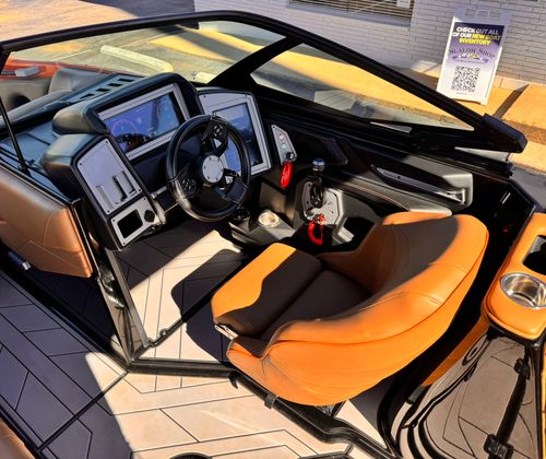 Now available on consignment at our New Used Boat Super Center in Lewisville, this pristine 2019 Supra SL 450 is a high-performance luxury wake boat, designed for surfing, wakeboarding, and family fun. Finished in striking Gunmetal Flake, Orange, and Black gelcoat, it combines cutting-edge technology with attention to detail and superior build quality.
