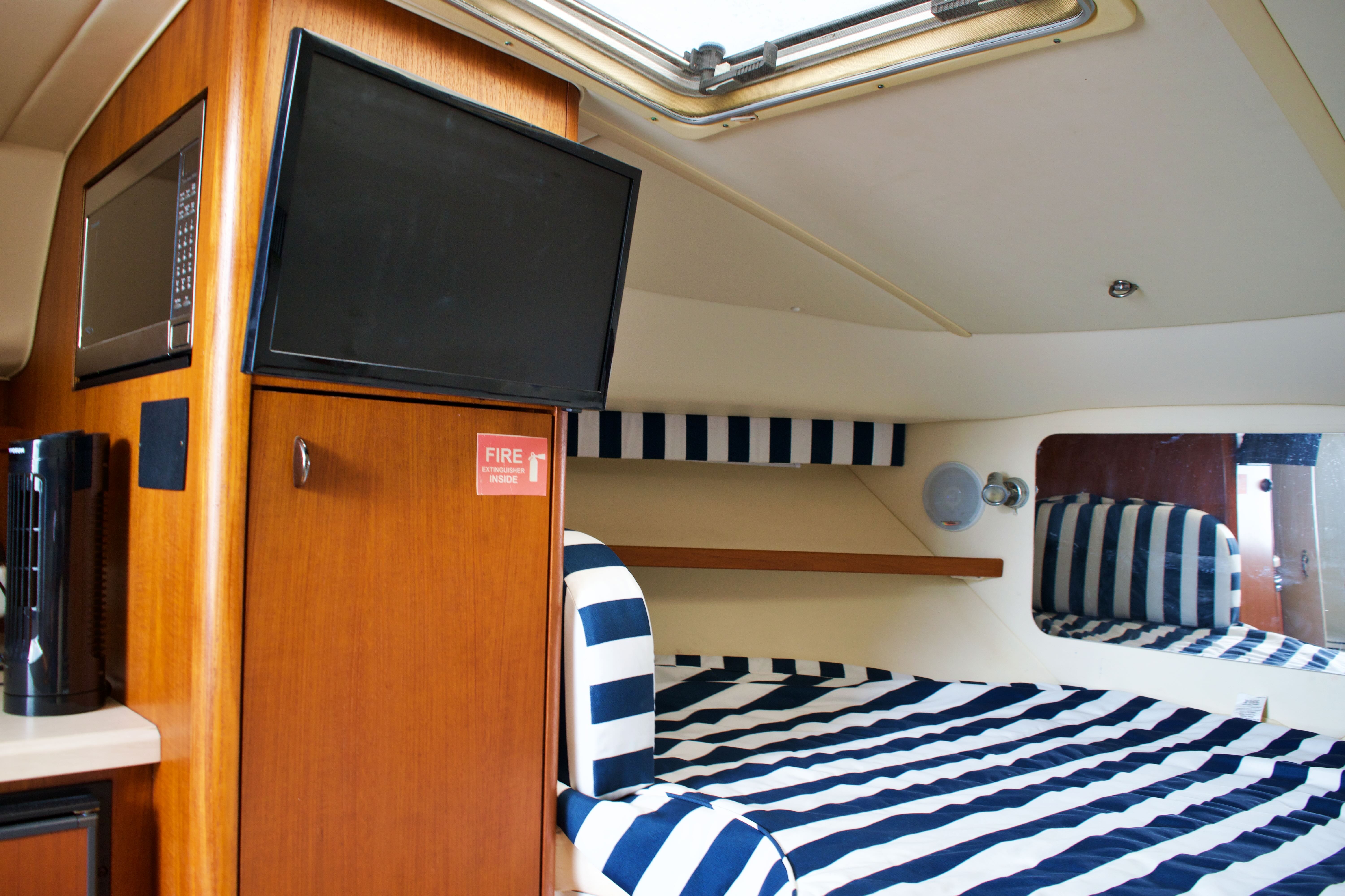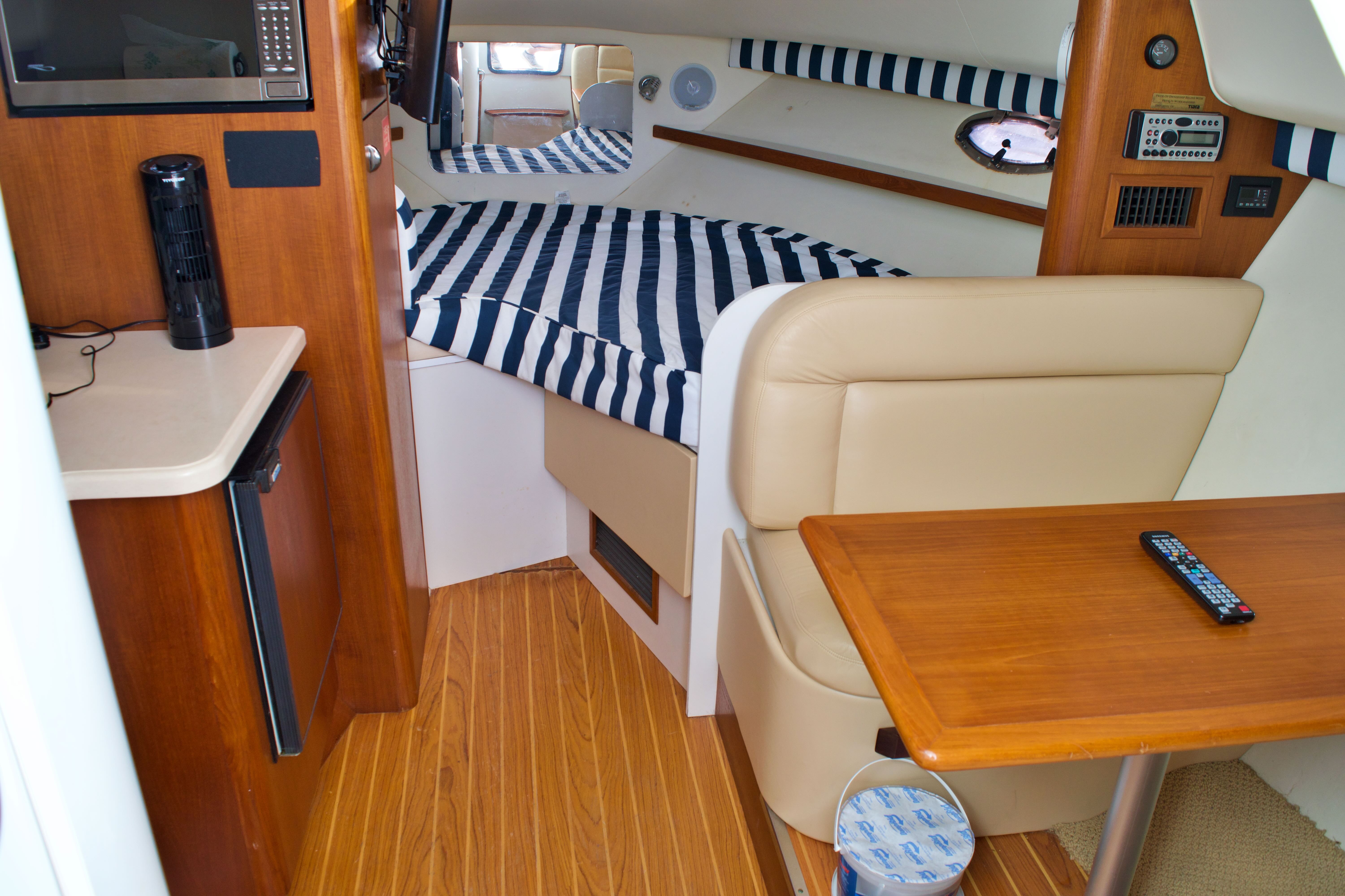 - Cabin Appliances: Refrigerator, Microwave, Glass Cooktop