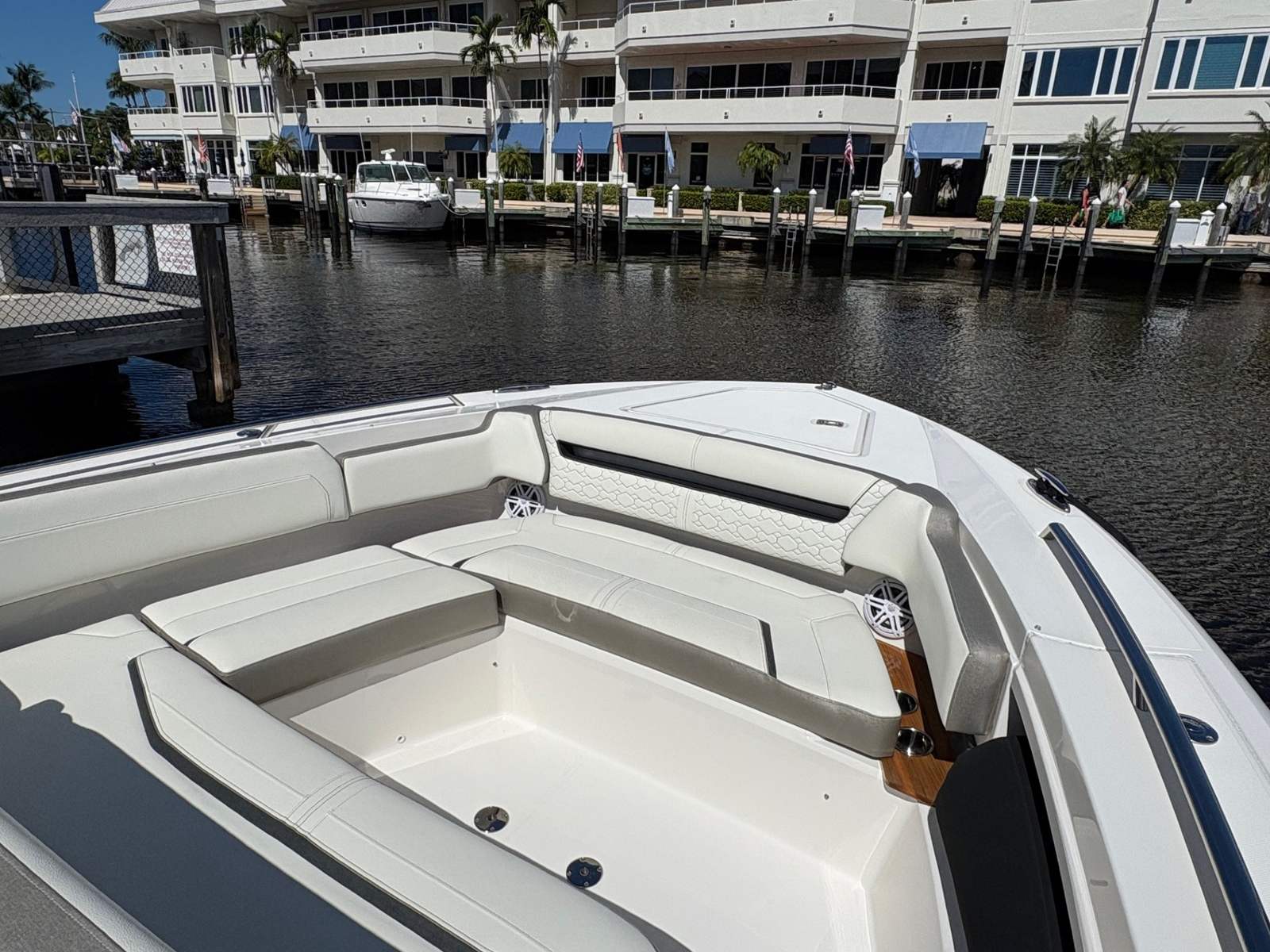 Power and precision define the performance of the 2023 Tiara Yachts 38 LS. Equipped with three robust engines delivering a combined 1200 horsepower, this yacht is engineered for exhilarating speed and smooth handling. Whether you are cruising along the coastline, island hopping, or making a quick run to your favorite waterfront restaurant, the triple-engine setup ensures you have the power and reliability needed for any adventure. The responsive handling and impressive acceleration make every outing a thrill, while the efficient design helps maximize your time on the water.