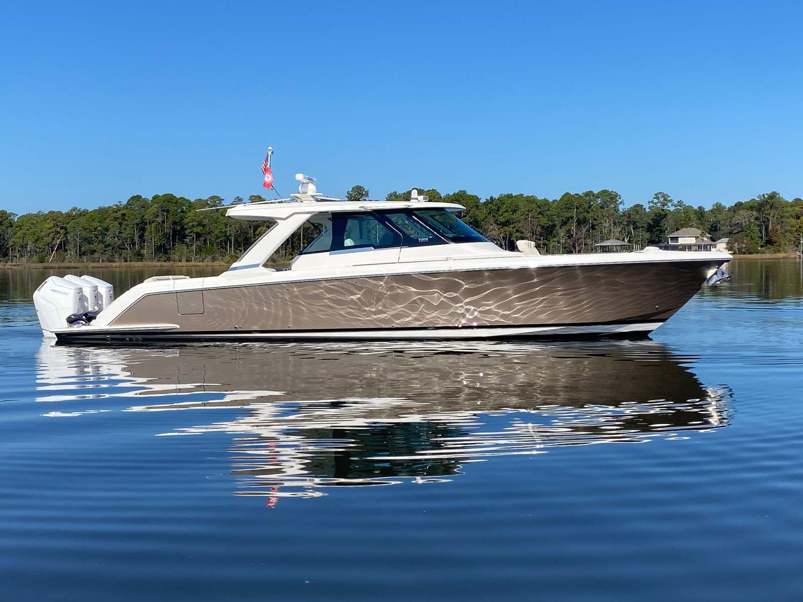 Powering the Tiara Yachts 48 LS are three robust engines, delivering a combined 1,800 horsepower. This impressive powertrain ensures exhilarating performance, smooth acceleration, and reliable handling in a variety of conditions. The triple-engine setup not only offers outstanding speed and agility but also provides the confidence to explore new horizons with ease. Whether you’re cruising along the coastline or venturing to distant destinations, the 48 LS’s performance capabilities make every journey a thrill. The advanced engineering behind this Tiara Yachts boat for sale guarantees a responsive and enjoyable ride, perfect for those who appreciate both power and precision on the water.