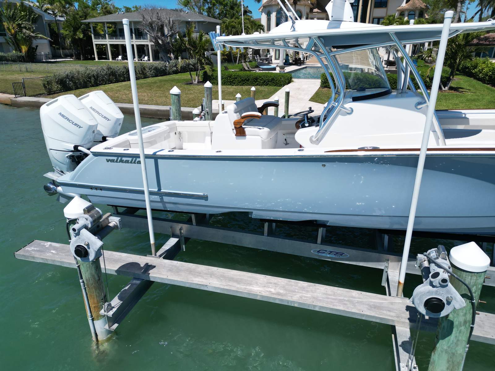 Powered by twin engines delivering a total of 800 horsepower and only 46 engine hours, the V33 promises exhilarating performance and reliability for every outing. The patented Stepped-V Ventilated Tunnel delivers the softest, driest, and most efficient ride of any center console in this size range. This V-33 possesses big-boat technology. It is loaded with nearly every option available including a Seakeeper 2 and Zipwake trim tabs to further improve the legendary Valhalla ride. The V-33 was designed for maximum live well and fish box capacity. A standard 52-gallon transom live well anchors the cockpit, and five overboard-draining in-deck fish boxes from 32 to 98 gallons are strategically positioned so you’re never more than a half-step from a home for your catch. The hardtop package comes with an assortment of accessories (Lumitec spreader lights, a six-rod rocket launcher and overhead electronics and radar pods) that’ll keep you battle-ready 24/7.