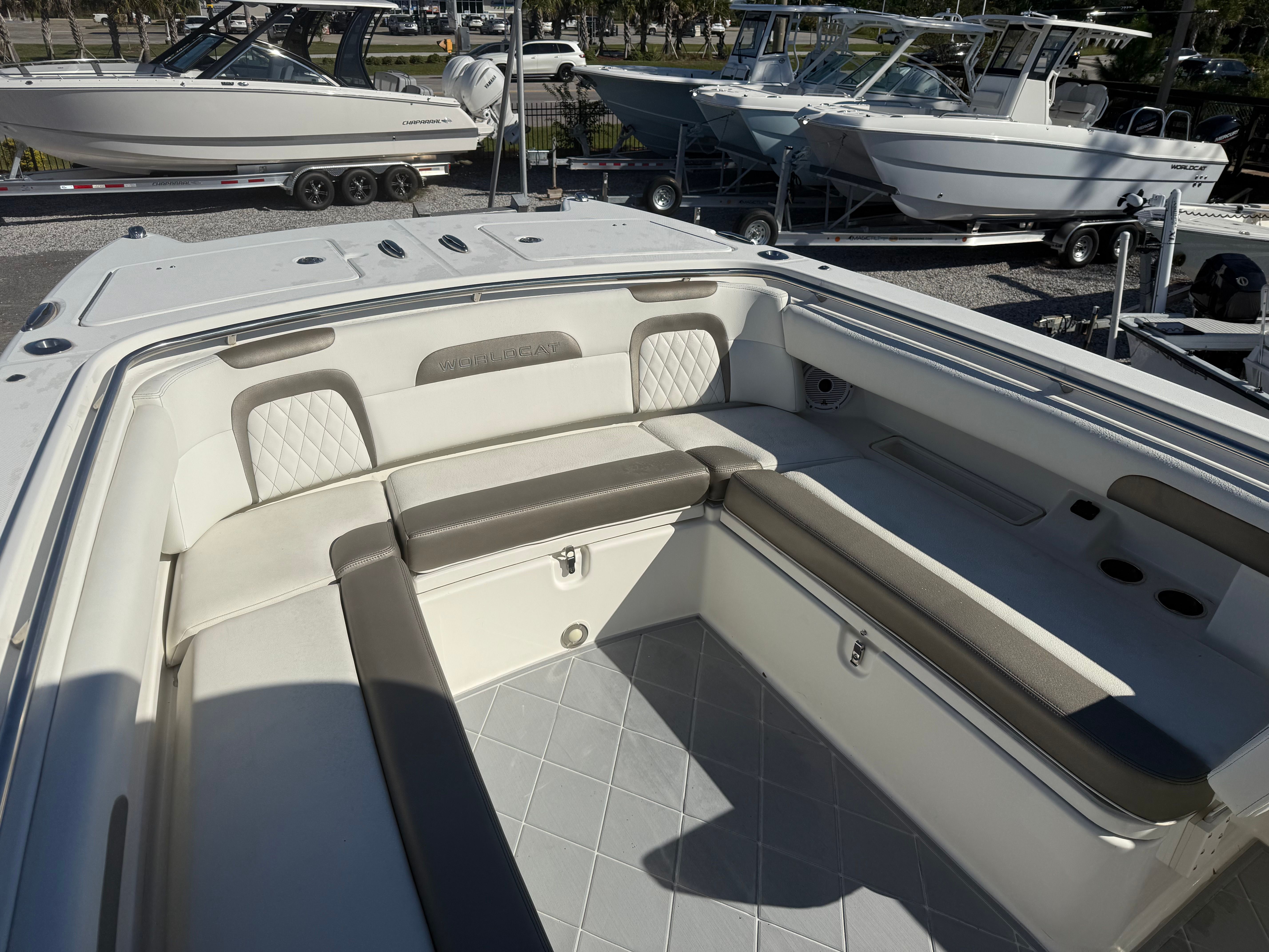 This World Cat boat for sale is perfectly suited for a wide range of activities. Anglers will appreciate the stability and spaciousness of the deck, making it easy to cast lines and reel in the catch of the day. Families will love the comfortable seating and ample space for picnics, swimming, and sunbathing. The boat’s performance capabilities make it ideal for water sports enthusiasts who want to tow tubes or wakeboards. For those seeking relaxation, the World Cat 280 CC provides a serene platform for sunset cruises, island hopping, or simply enjoying the beauty of the open water. Its versatility ensures that every outing can be tailored to your preferences, making it a true all-purpose vessel.