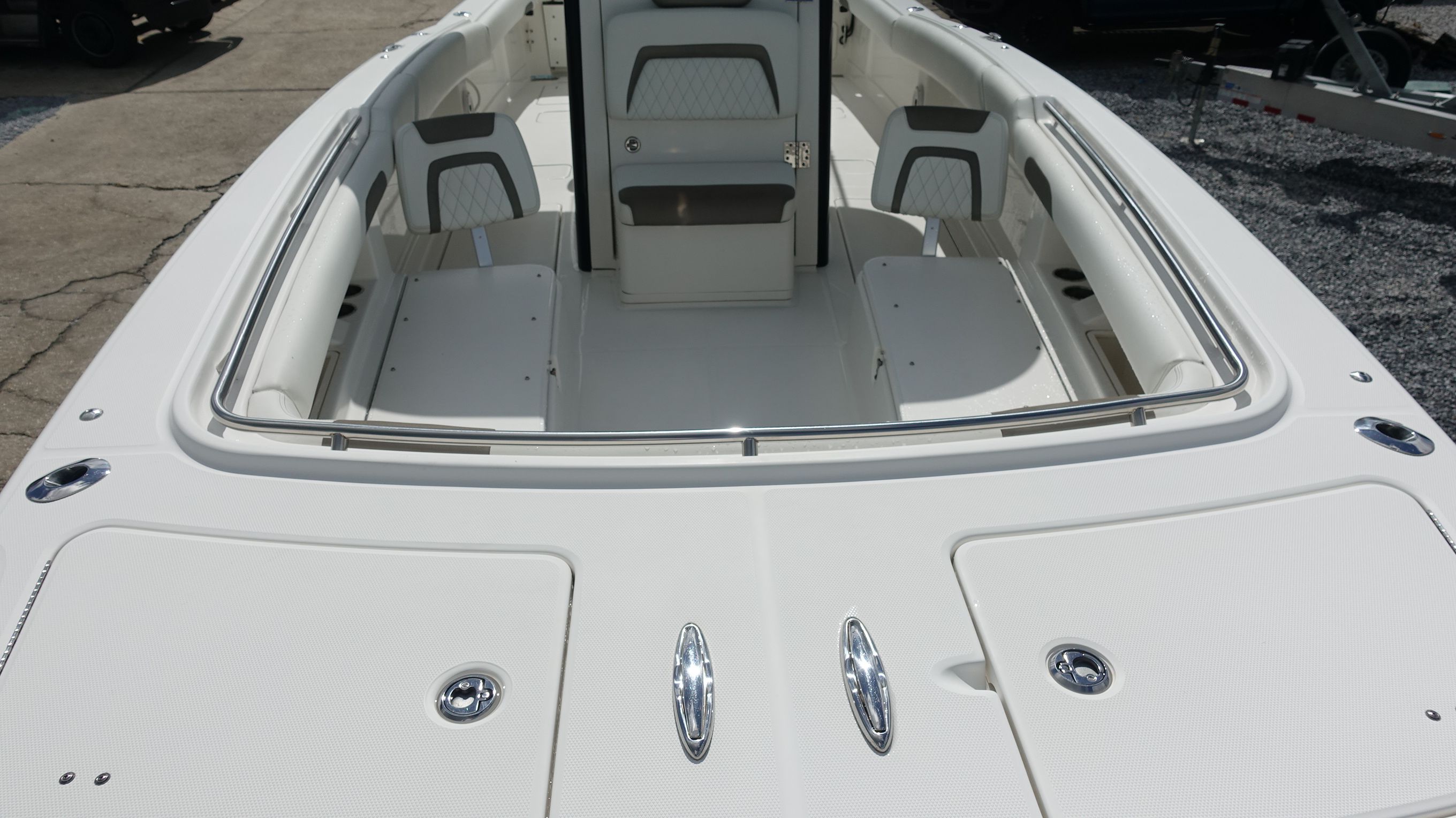 The World Cat 280 CC is packed with features designed to elevate your boating experience. Its center console layout maximizes deck space, providing unobstructed movement and easy access to all areas of the boat. The spacious console offers protection from the elements and houses intuitive controls for effortless navigation. The 28-foot length ensures plenty of room for seating, storage, and fishing gear, while the dual engines provide the power needed for a variety of water activities. The World Cat 280 CC’s hull design is optimized for stability and comfort, reducing spray and delivering a smooth ride even in choppy conditions. With its thoughtful layout and premium construction, this World Cat boat for sale is built to impress.