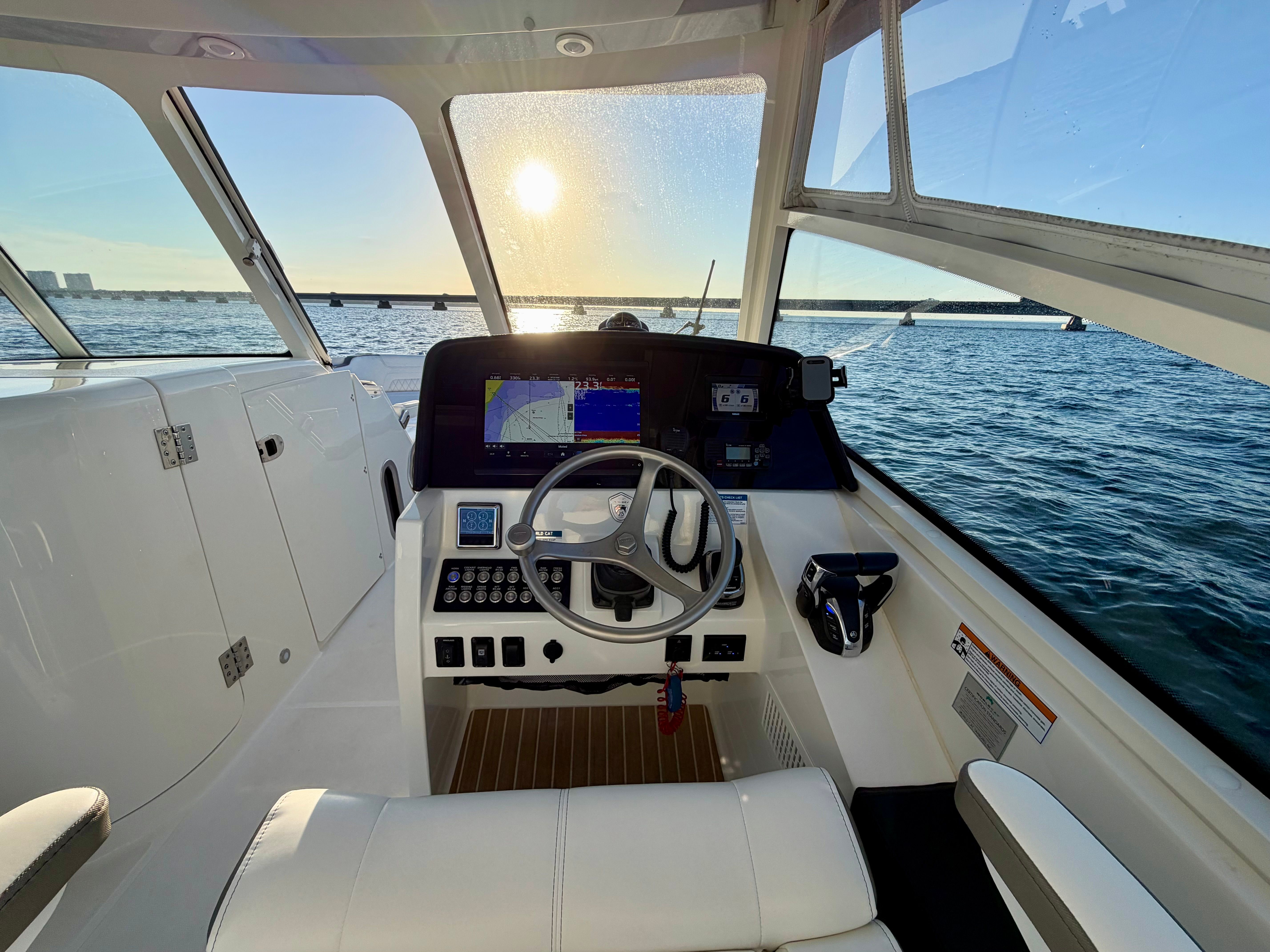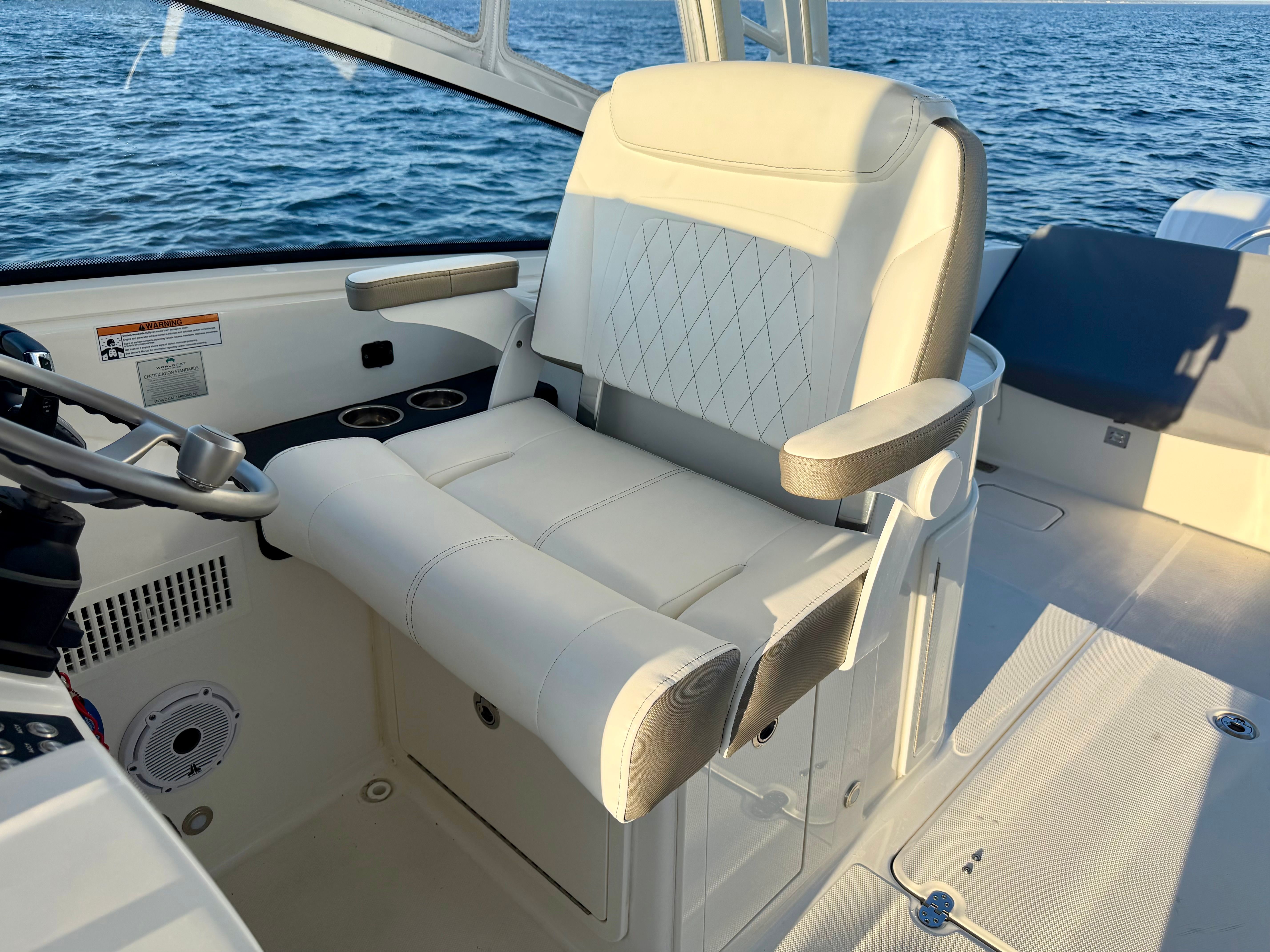 The World Cat 325 DC is designed with practicality in mind, making boat ownership easier and more enjoyable. Its spacious storage compartments allow you to bring along all the gear and supplies you need for a day on the water, while the intuitive layout ensures everything is within easy reach. Docking is a breeze thanks to the responsive handling and twin-engine configuration, giving you greater control and confidence in tight spaces.Fuel efficiency is another key advantage of the World Cat 325 DC, allowing you to spend more time on the water and less time at the fuel dock. The durable construction and high-quality materials used throughout the boat ensure long-lasting performance and minimal maintenance, so you can focus on making memories rather than worrying about upkeep.