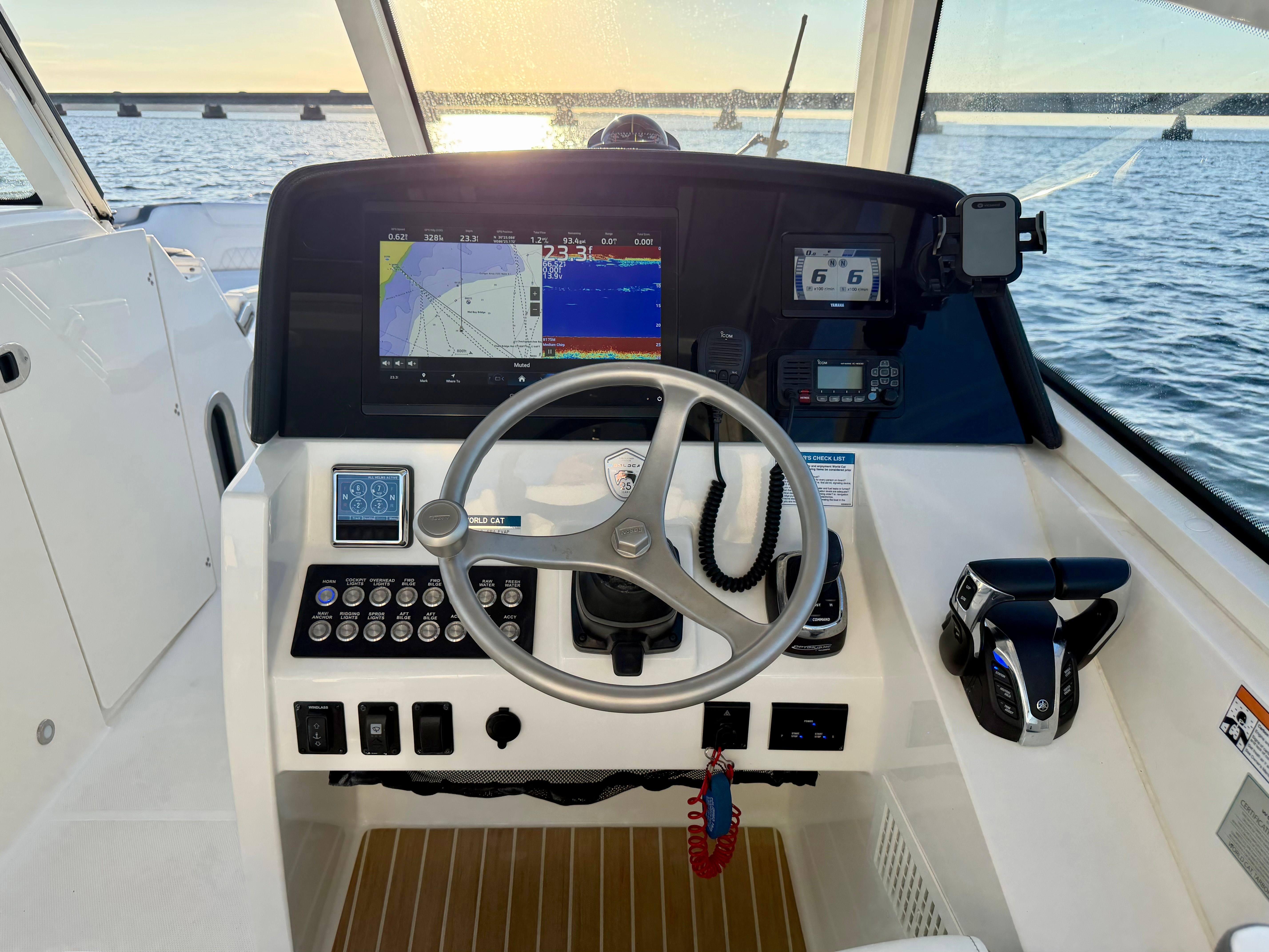 This 2023 World Cat 325 DC powered by twin Yamaha 300's with only 330 maintained hours is new to the market and ready for her new home. Engines are backed by Yamaha's extended Y.E.S. warranty until 12/2029! Owners are only selling due to a new boat incoming.
