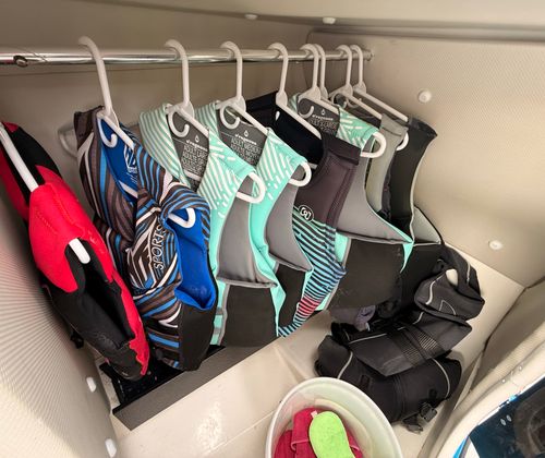 At the heart of the Yamaha 255 XD are two powerful engines, delivering a combined 500 horsepower. With only 214 engine hours, these engines have plenty of life left to offer, ensuring reliable and consistent performance for many seasons to come. The twin-engine setup provides exceptional acceleration, responsive handling, and the agility that jet boats are known for. Whether you are cruising at high speeds, towing water sports enthusiasts, or navigating tight spaces, the Yamaha 255 XD offers a dynamic and engaging ride. The jet propulsion system not only enhances maneuverability but also provides a safer experience for swimmers and water sports participants, as there are no exposed propellers.