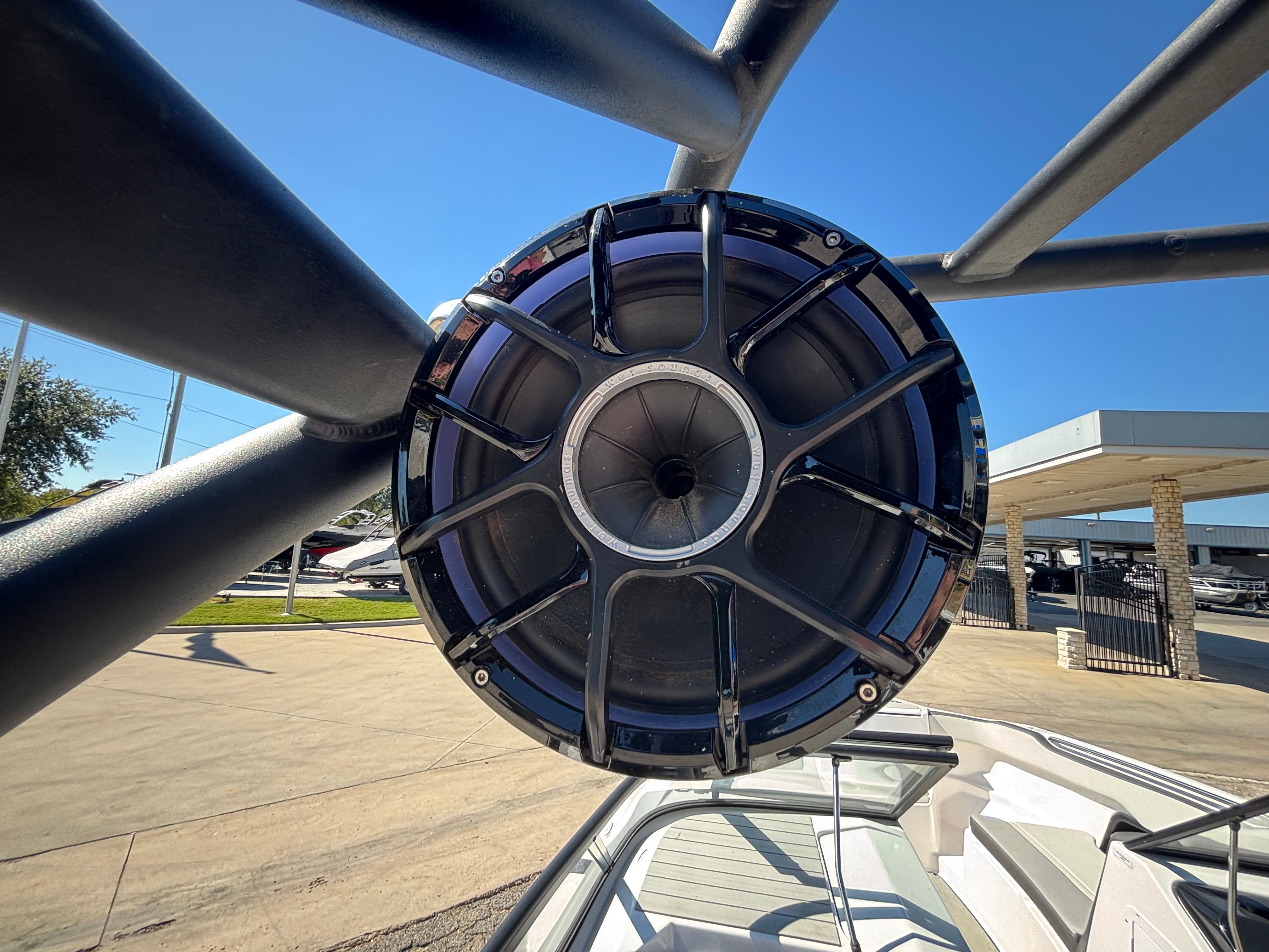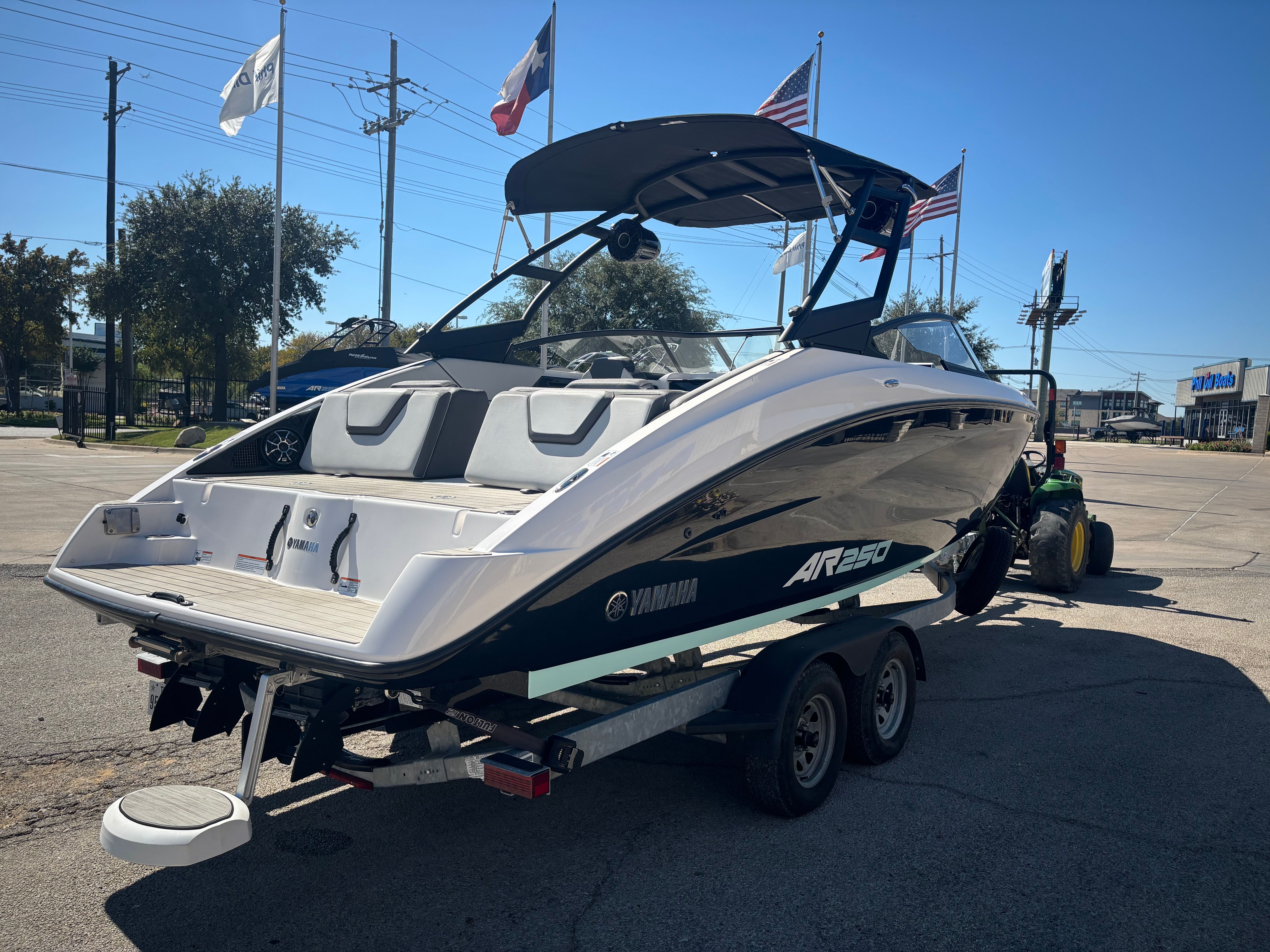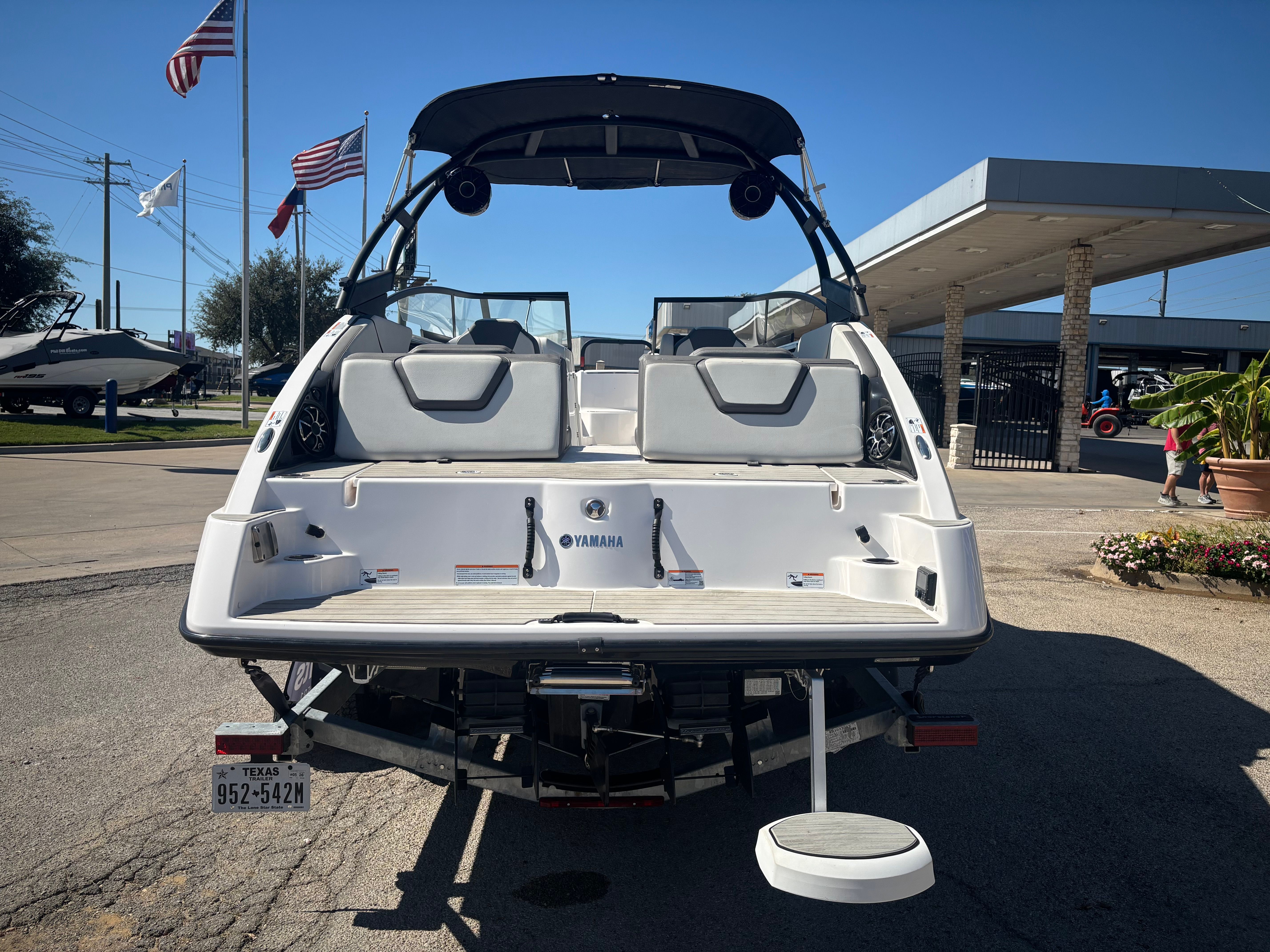 One of a kind loaded very clean 2023 Yamaha AR 250 with only 56 hours of fresh water use! This boat is exceptionally clean and loaded with extras, Wetsounds Tower Speakers, upgraded speakers throughout the boat, LED speaker lights, sub woofer, 3 amps, battery charger, Yamaha transom swim up seats, custom tandem axle trailer.