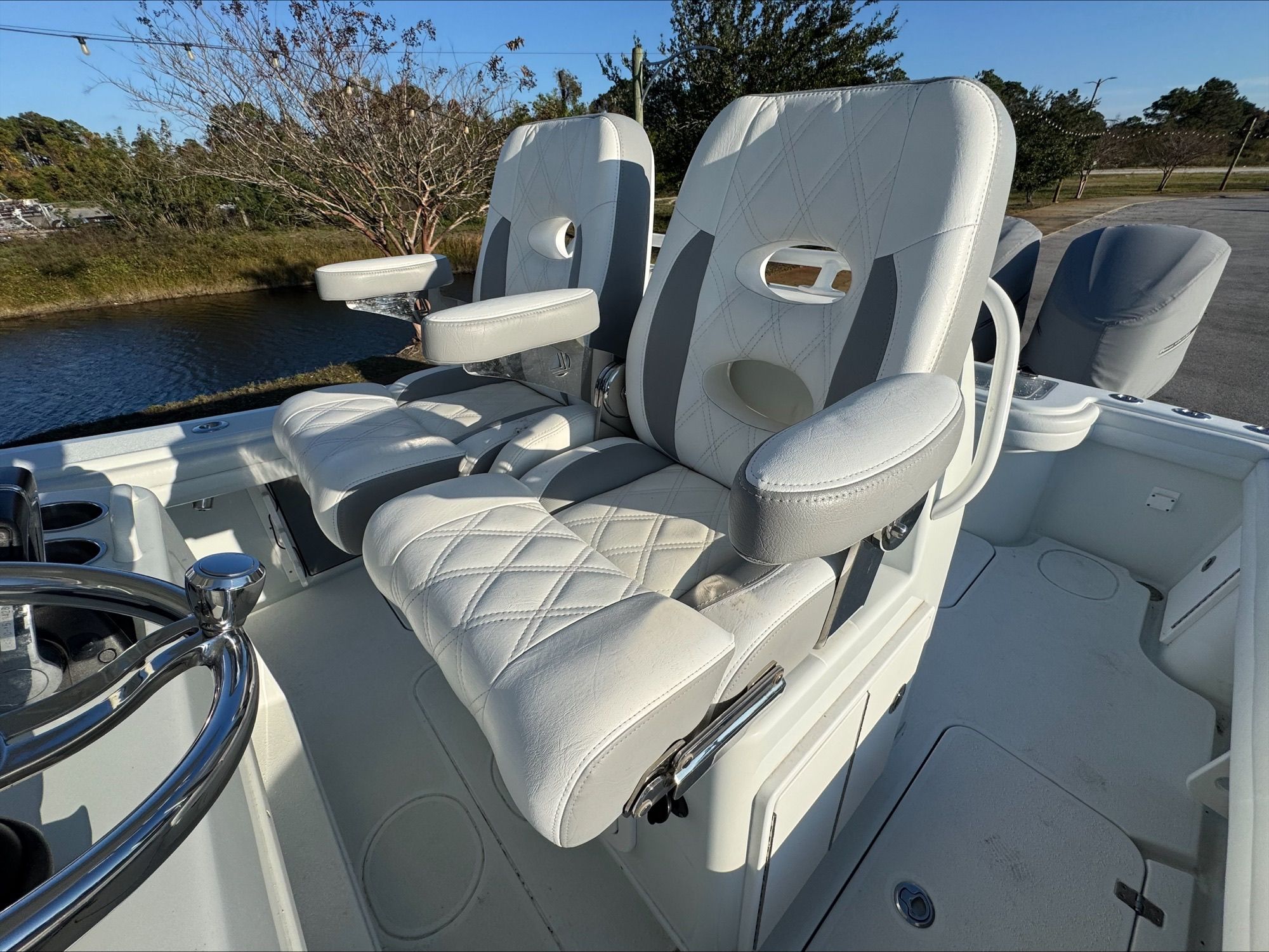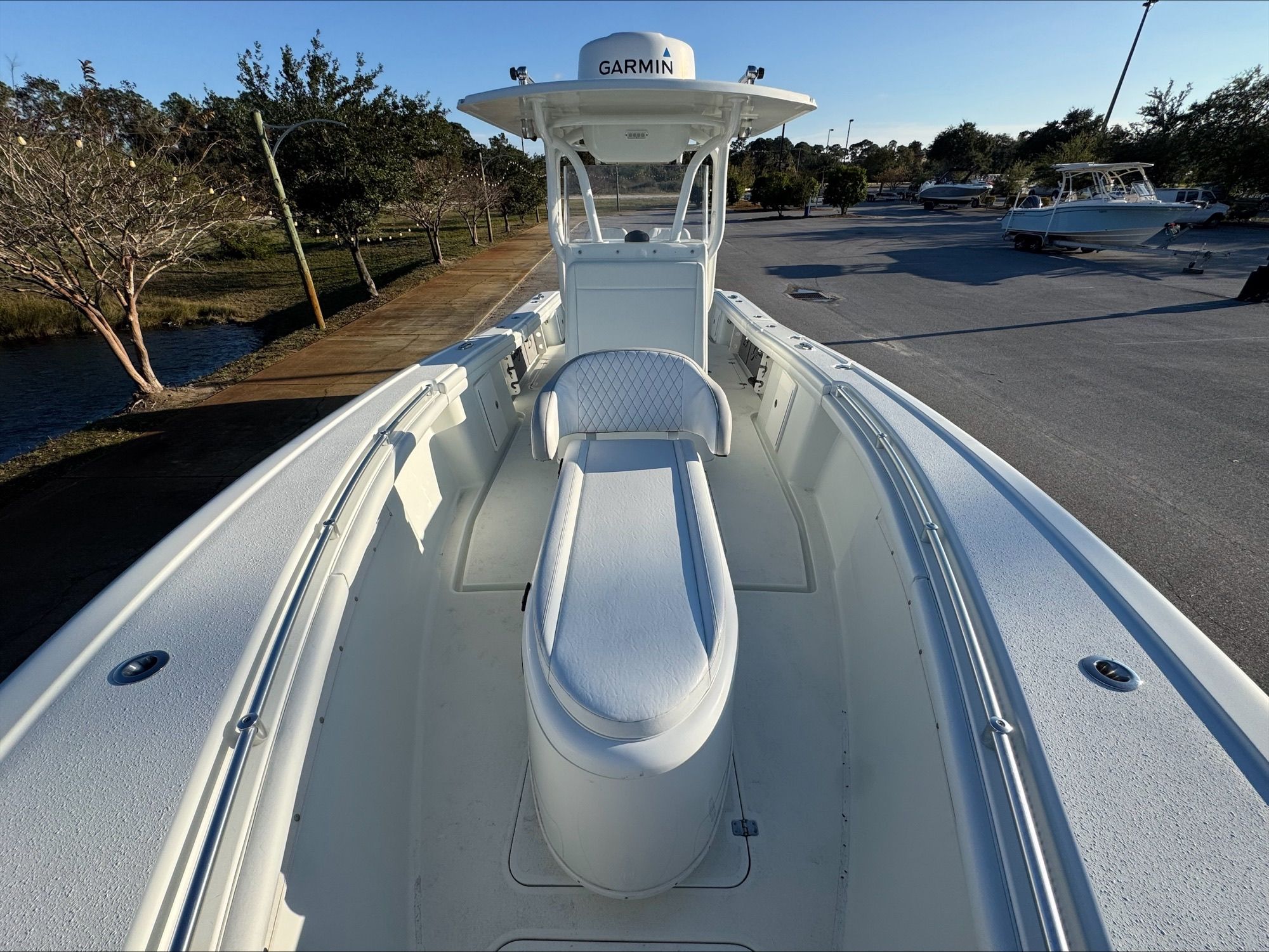 Powering this Yellowfin boat for sale are two high-performance engines, delivering a combined 600 horsepower. This impressive setup ensures that the 29 CC is not only fast but also responsive, providing the agility needed for quick maneuvers and the strength required for offshore adventures. The twin-engine configuration enhances reliability and safety, giving you peace of mind whether you’re navigating coastal waters or heading out into deeper seas. With this level of horsepower, the Yellowfin 29 CC offers exhilarating acceleration and top-end speed, making it an ideal choice for those who value both excitement and control on the water.